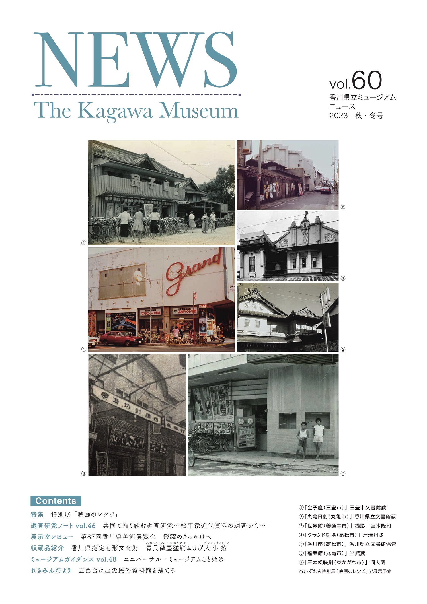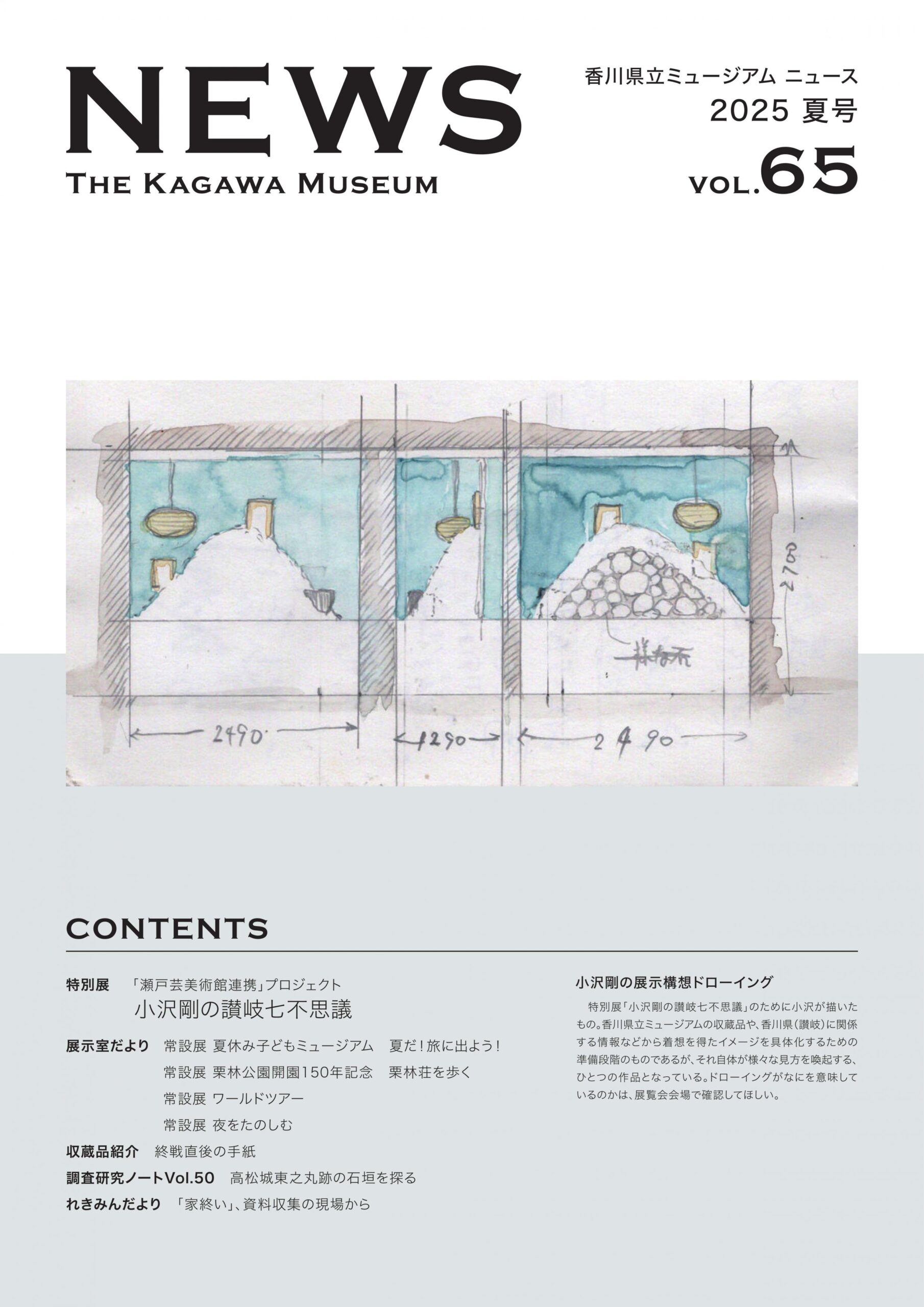 - 展示室だより:特別展「小沢剛の讃岐七不思議」、常設展「掌の美」、常設展「昭和100年記念昭和の記憶と美術」、常設展「昭和100年記念昭和の香川」