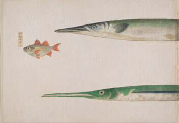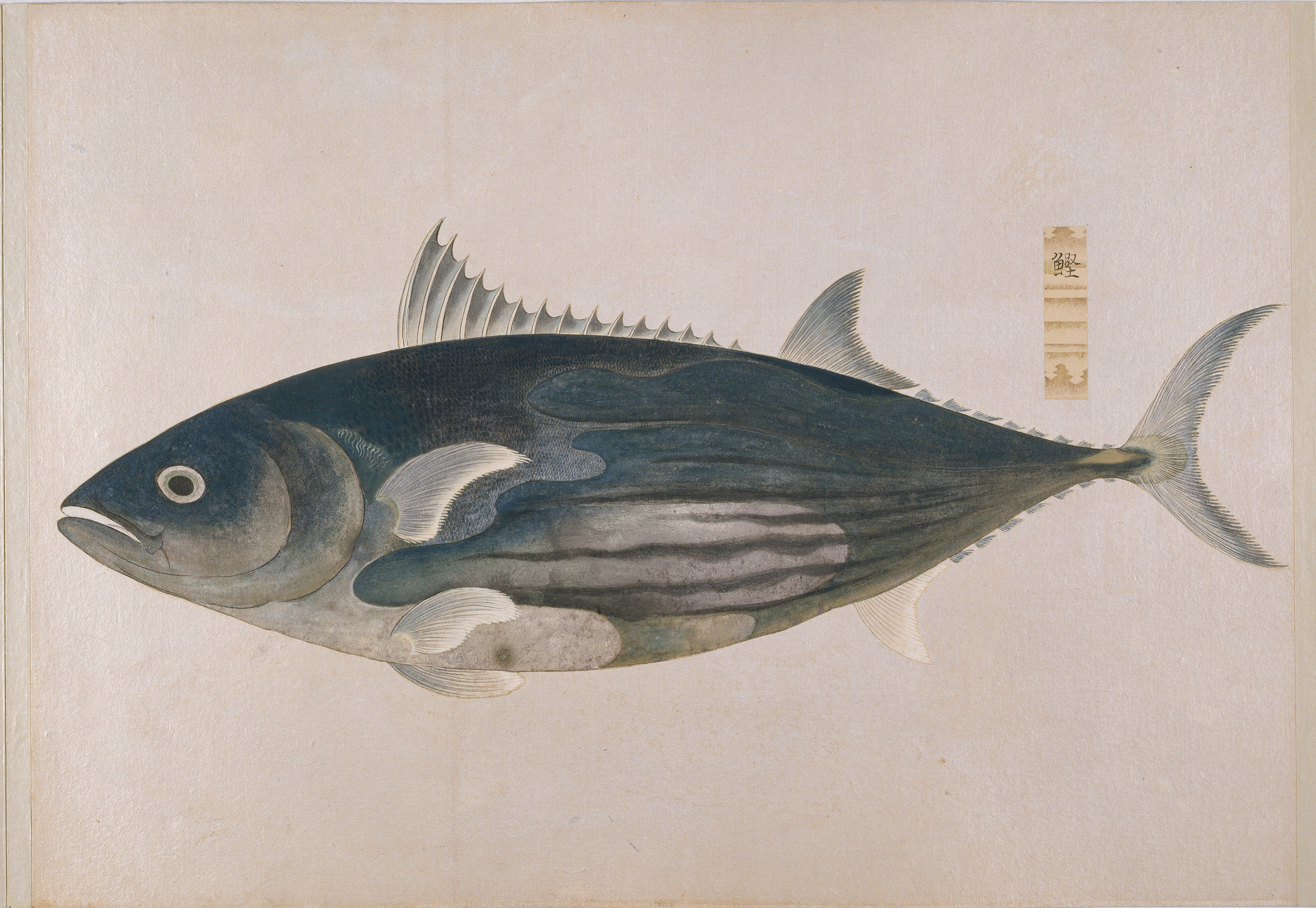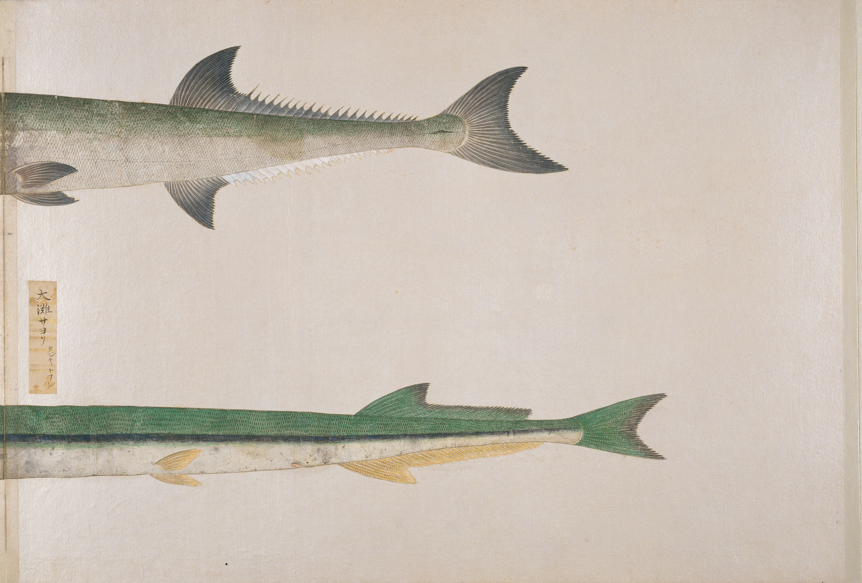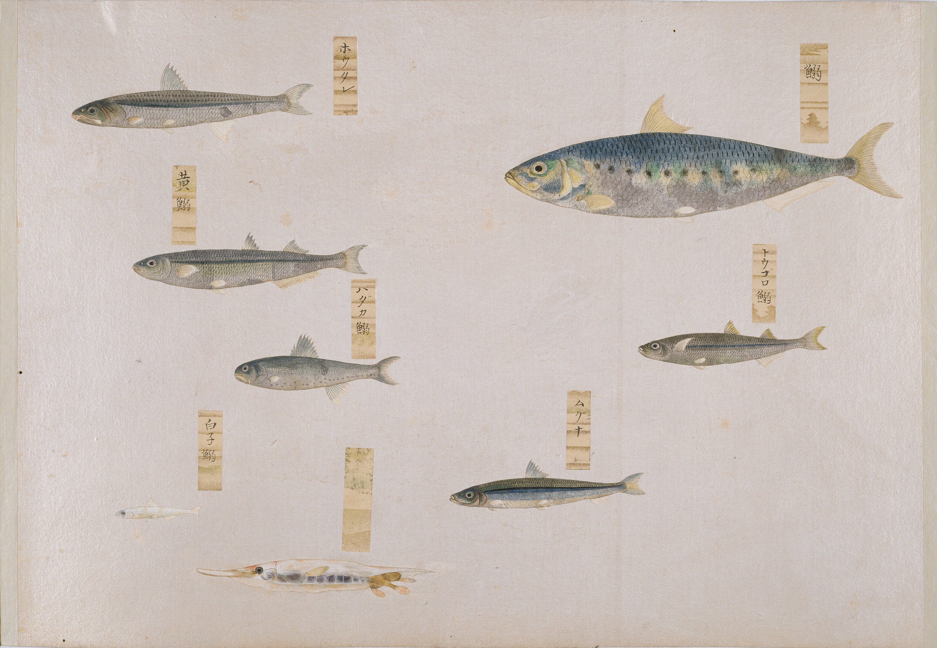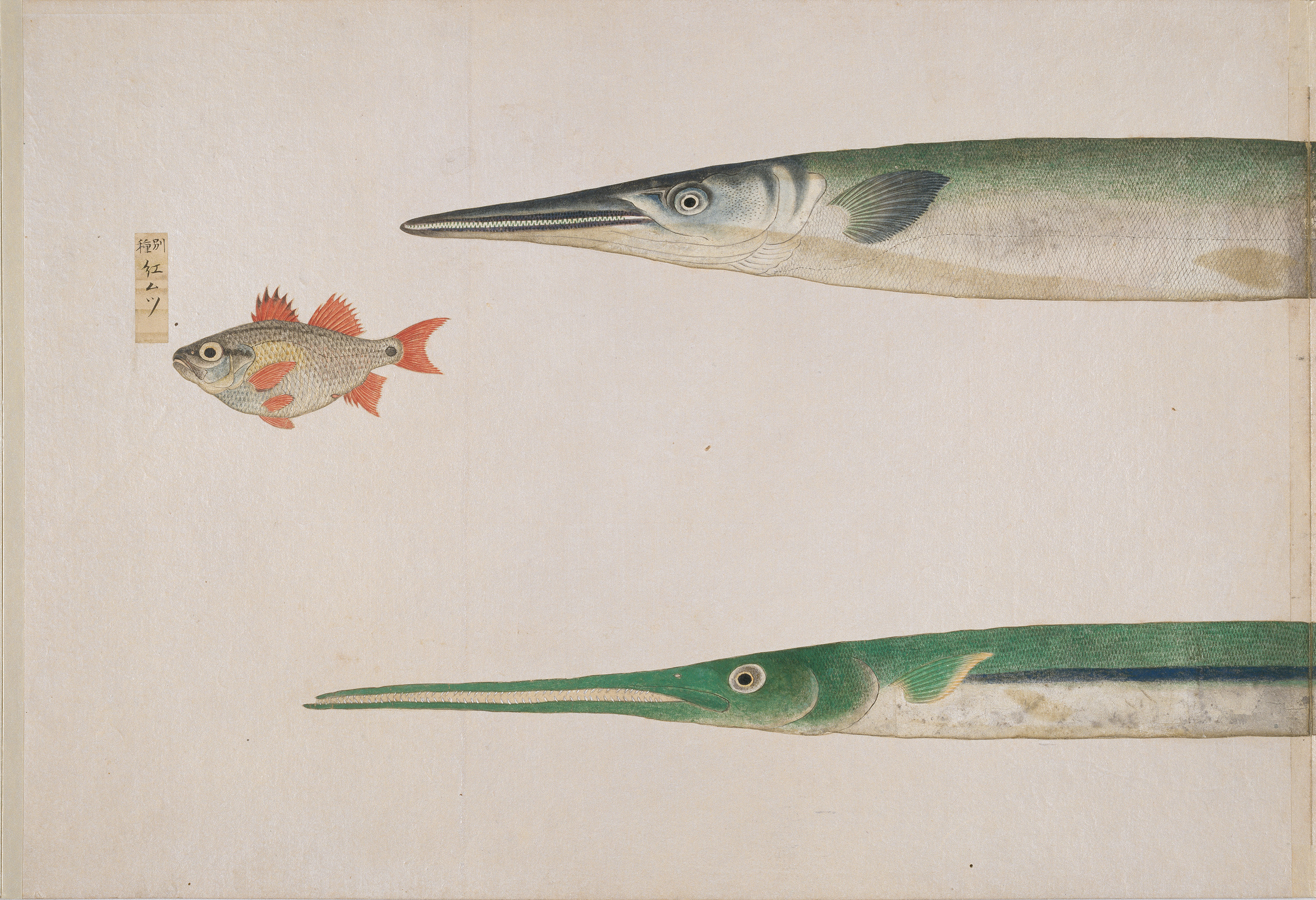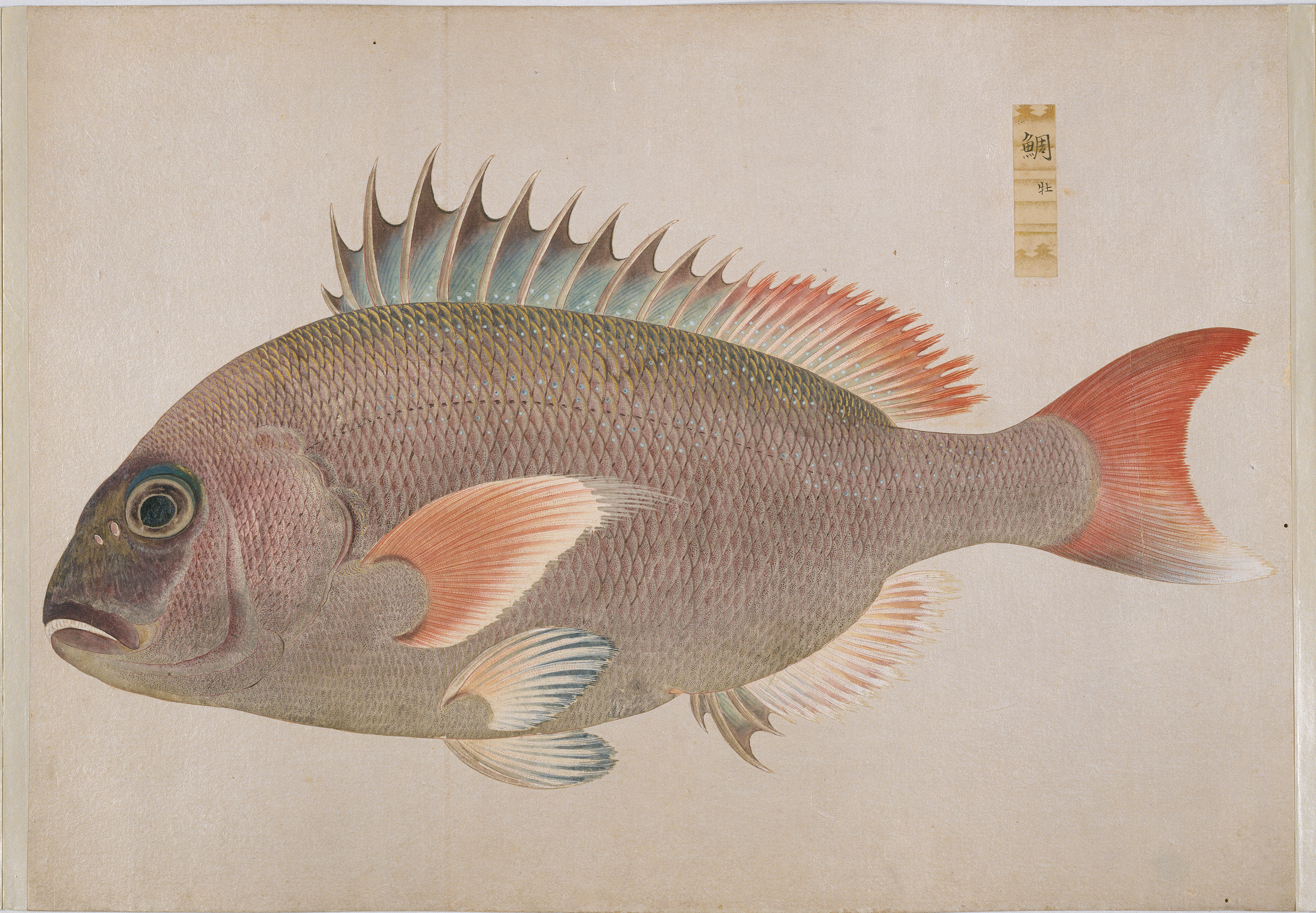 「衆鱗図」は、高松藩主松平家に伝来する4種13帖の博物図譜のひとつで、4帖の画帖からなる水生生物図鑑である。鳥を描く「衆禽画譜」2帖、植物を描く「衆芳画譜」4帖と「写生画帖」3帖とあわせ、2,141図が収録される。