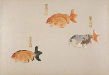魚類の姿は生物学的特徴を的確に捉え、銀箔(ぎんぱく)を用いた光沢表現や、輪郭に沿った切り抜き、盛り上げ彩色など多彩な技法によって精緻に描かれている。