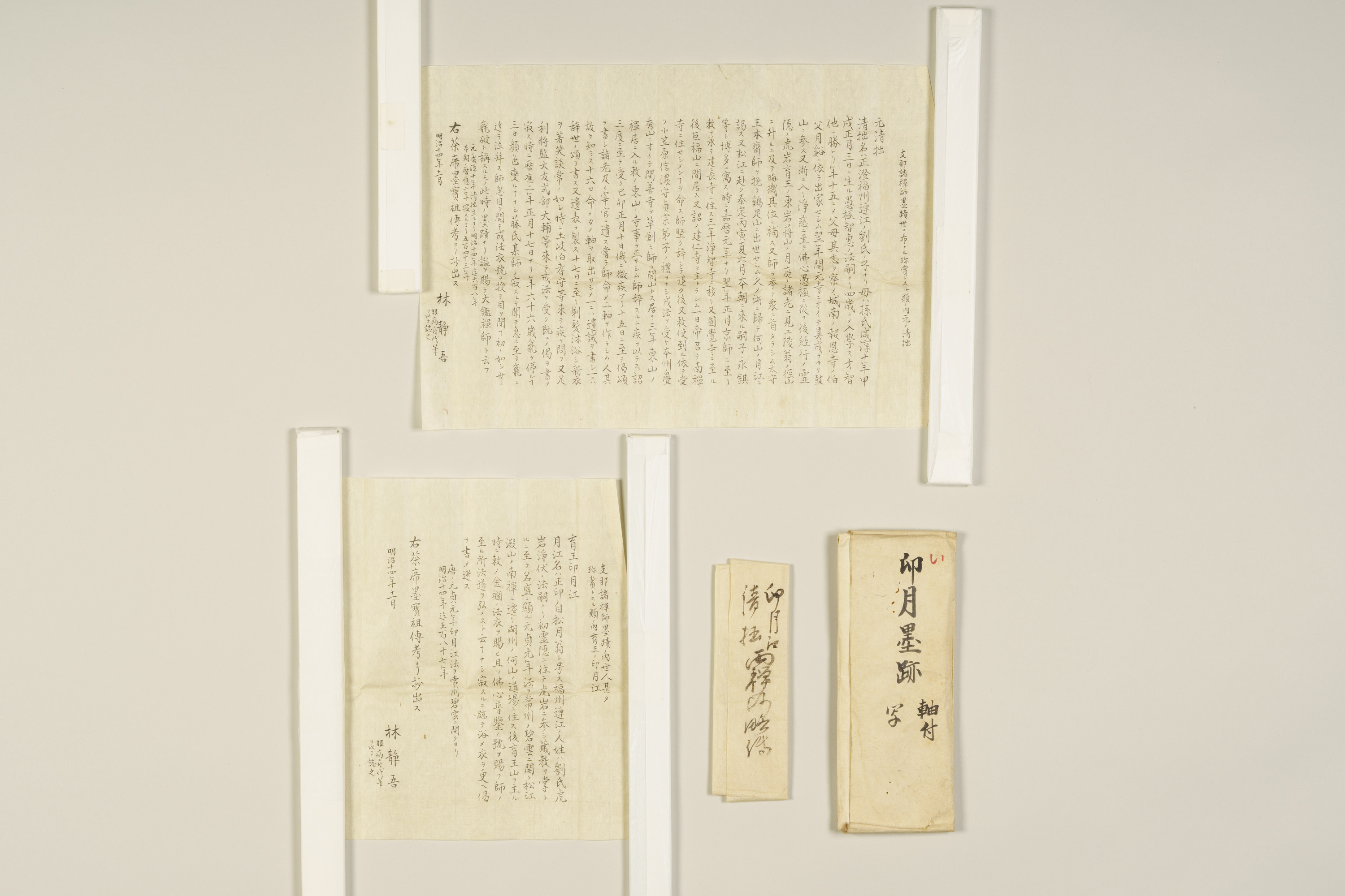 禅宗はもともと文字に頼らずに教えを伝えることを大切にしているが、中国・宋代(10~13世紀)以降になると、禅僧の書画や詩が、禅の心などを表すものとして重んじられるようになった。そのような禅僧の書を墨蹟といい、なかでも師が弟子に対して修行の認可証明として与える文書を印可状と呼ぶ。