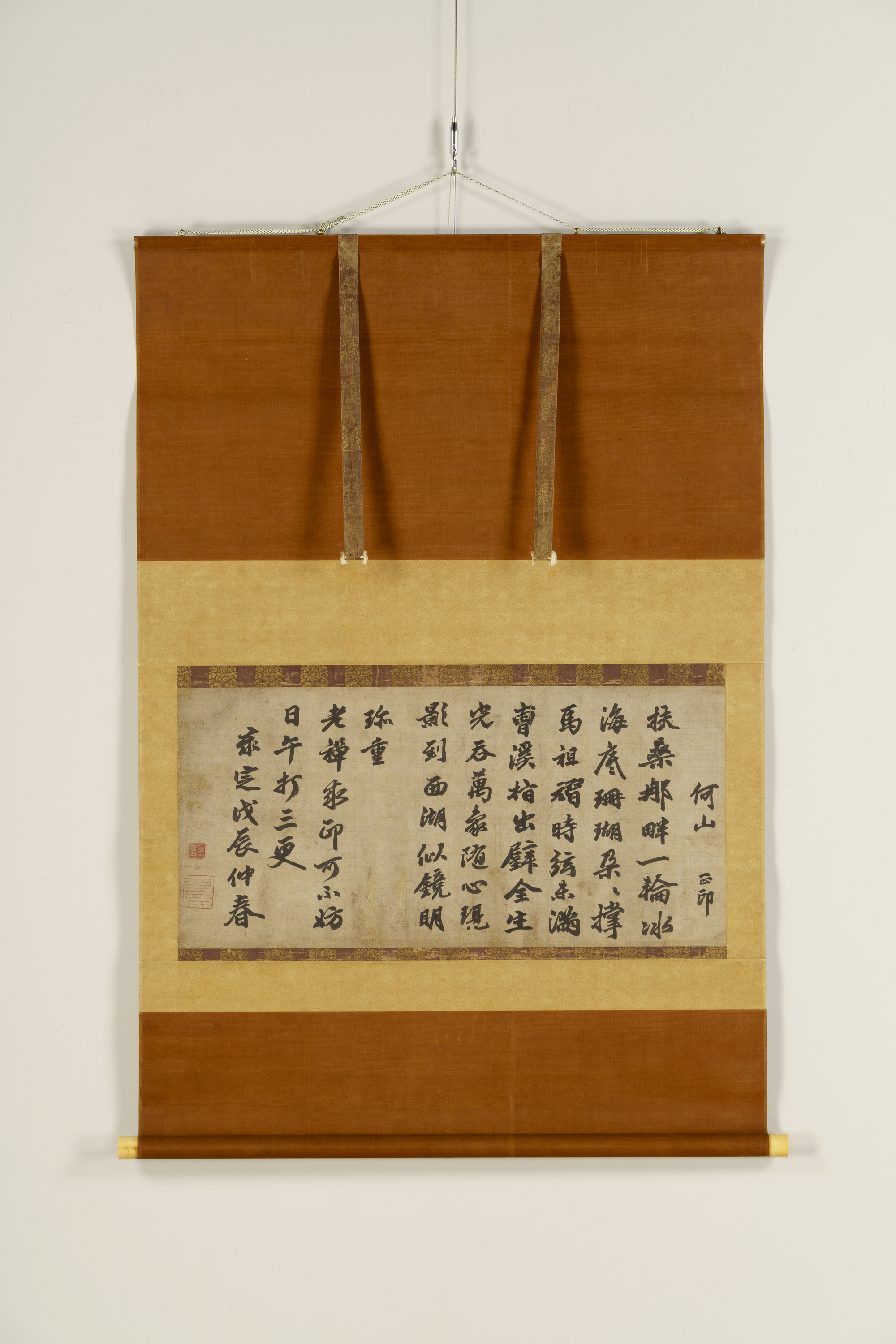 月江正印墨蹟 印可状 げっこうしょういんぼくせき いんかじょう 作者 月江 正印(げっこう しょういん、1267-?) 時代 中国・元 泰定5年(1328) 品質・員数 紙本墨書 1幅 法量(cm) 縦32.7 横69.3 分類 書 指定区分 重要文化財 収蔵番号 MY0#00003 もっと見る もっと見る 解説 禅宗はもともと文字に頼らずに教えを伝えることを大切にしているが、中国・宋代(10~13世紀)以降になると、禅僧の書画や詩が、禅の心などを表すものとして重んじられるようになった。そのような禅僧の書を墨蹟といい、なかでも師が弟子に対して修行の認可証明として与える文書を印可状と呼ぶ。本資料は中国・元代の代表的な禅僧である月江正印が弟子の老禅(ろうぜん)に与えた印可状である。多数の日本人僧侶が中国の月江のもとを訪れて教えを乞うており、老禅もそのような日本人僧のひとりと考えられている。高松藩主初代松平頼重(よりしげ)が、延宝元年(1673)に病を理由に隠居を許された際に徳川将軍家4代家綱(いえつな)から与えられたものと伝えられ、延宝3年に幕閣を招待した茶席で披露されたことが天保15年(1844)の箱書きなどに記録されている。なお、箱書きは高松藩の儒者菊地五山(きくちござん)の字を、香川漆芸の祖と称される玉楮象谷(たまかじぞうこく)が銀漆を用いて記している。 関連作品 著到御懐紙(後柏原天皇宸翰) 藤原佐理筆詩懐紙 光厳院宸翰御奉納心経 東山天皇宸翰御懐紙 作品をさがす リセット キーワード検索 分類 すべて 絵画(国内) 絵画(国外) 彫刻 工芸 書 デザイン 民俗資料 その他 指定区分 すべて 国宝 重要文化財 重要美術品 県指定 市町指定 検索