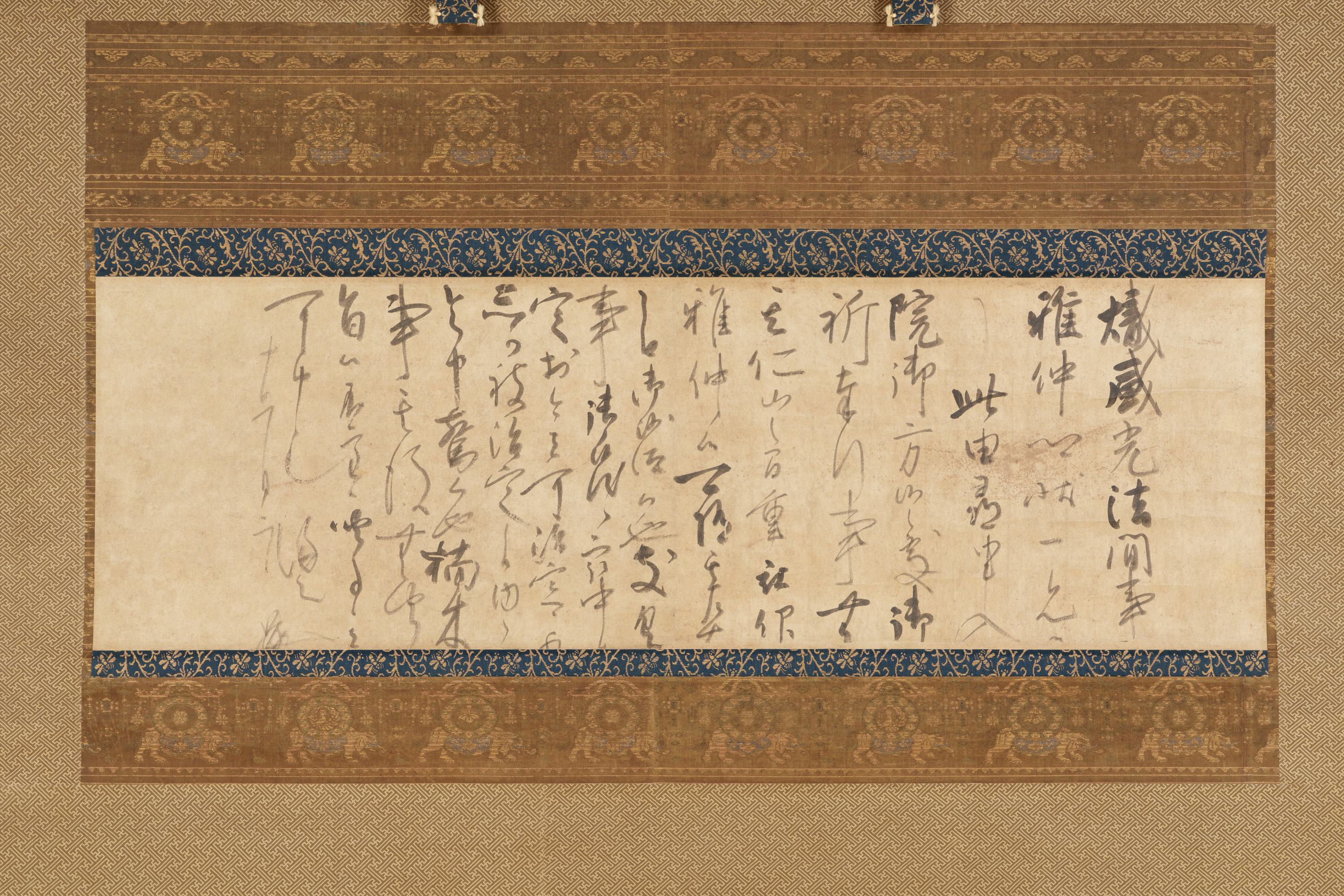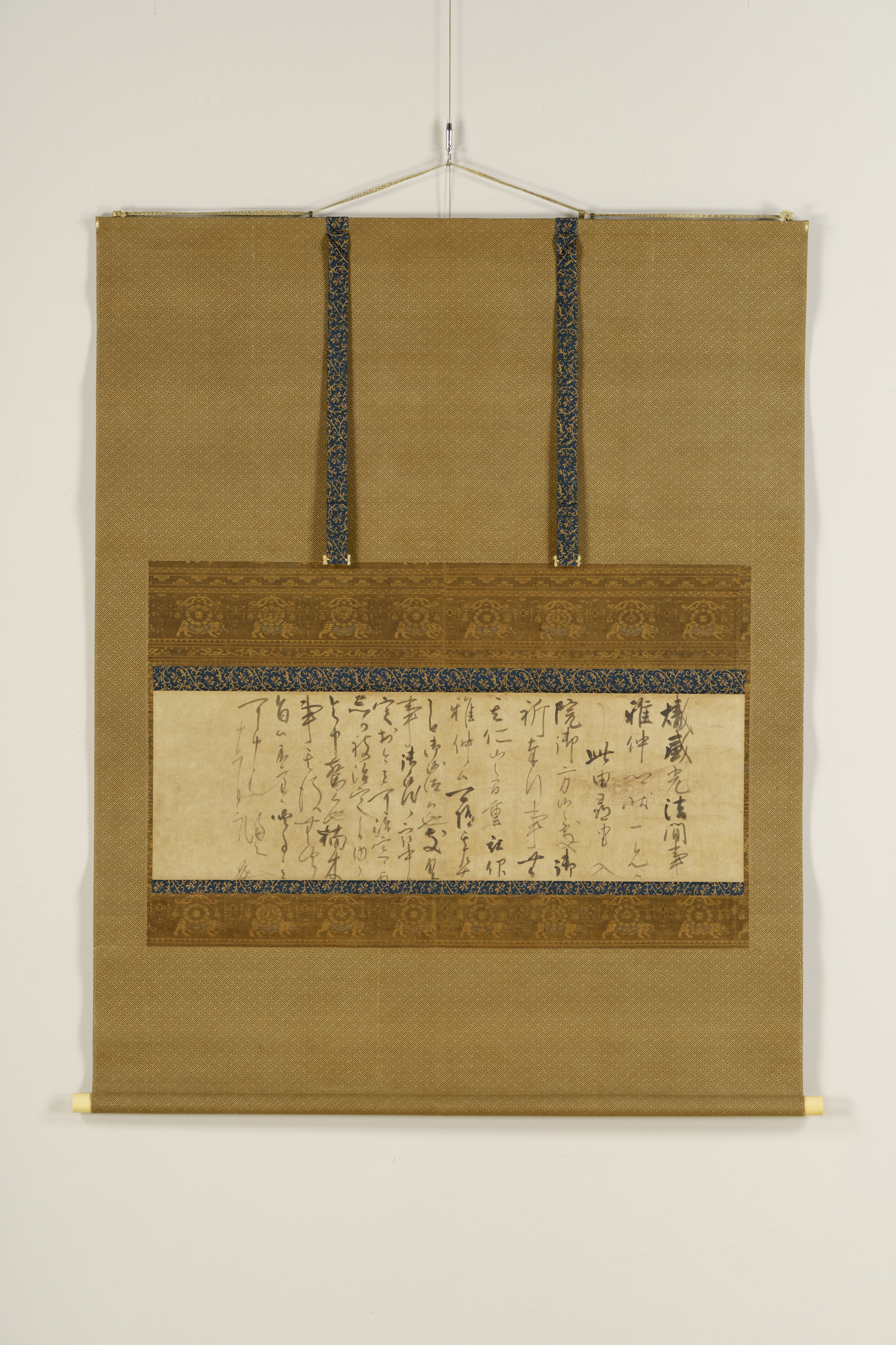 花園天皇宸翰御消息 はなぞのてんのう しんかん おんしょうそく 作者 花園天皇(はなぞのてんのう、1297-1348) 時代 鎌倉時代 正慶元年(1332) 品質・員数 紙本墨書 1幅 法量(cm) 縦29.0 横91.0 分類 書 指定区分 重要文化財 収蔵番号 MY0#00005 解説 宸翰とは天皇が自ら記した書をいう。花園天皇は書の名手として知られる伏見天皇の第3皇子で、自身も書にすぐれていたほか、日本・中国の古典や仏教を深く学んだ。本資料は花園天皇自筆の書状で、楠木正成(くすのきまさしげ)の挙兵をはじめとする戦乱を鎮めるために行われた熾盛光法(しじょうこうほう)という仏教の祈祷の準備について記したもの。祈祷が行われた時期などから正慶元年(1332)に弟の尊円法親王へあてて書かれたと推定され、時期・内容などから国宝「三朝宸翰」(前田育徳会蔵)と一連のものとみられている。水戸藩主徳川家2代の光圀(みつくに)から兄である高松藩主松平家初代の頼重(よりしげ)へ贈られたとされる品のひとつ。 関連作品 霊元天皇宸翰古歌御懐紙 後水尾天皇宸翰女房奉書 法華経 光厳院宸翰御奉納心経 作品をさがす リセット キーワード検索 分類 すべて 絵画(国内) 絵画(国外) 彫刻 工芸 書 デザイン 民俗資料 その他 指定区分 すべて 国宝 重要文化財 重要美術品 県指定 市町指定 検索