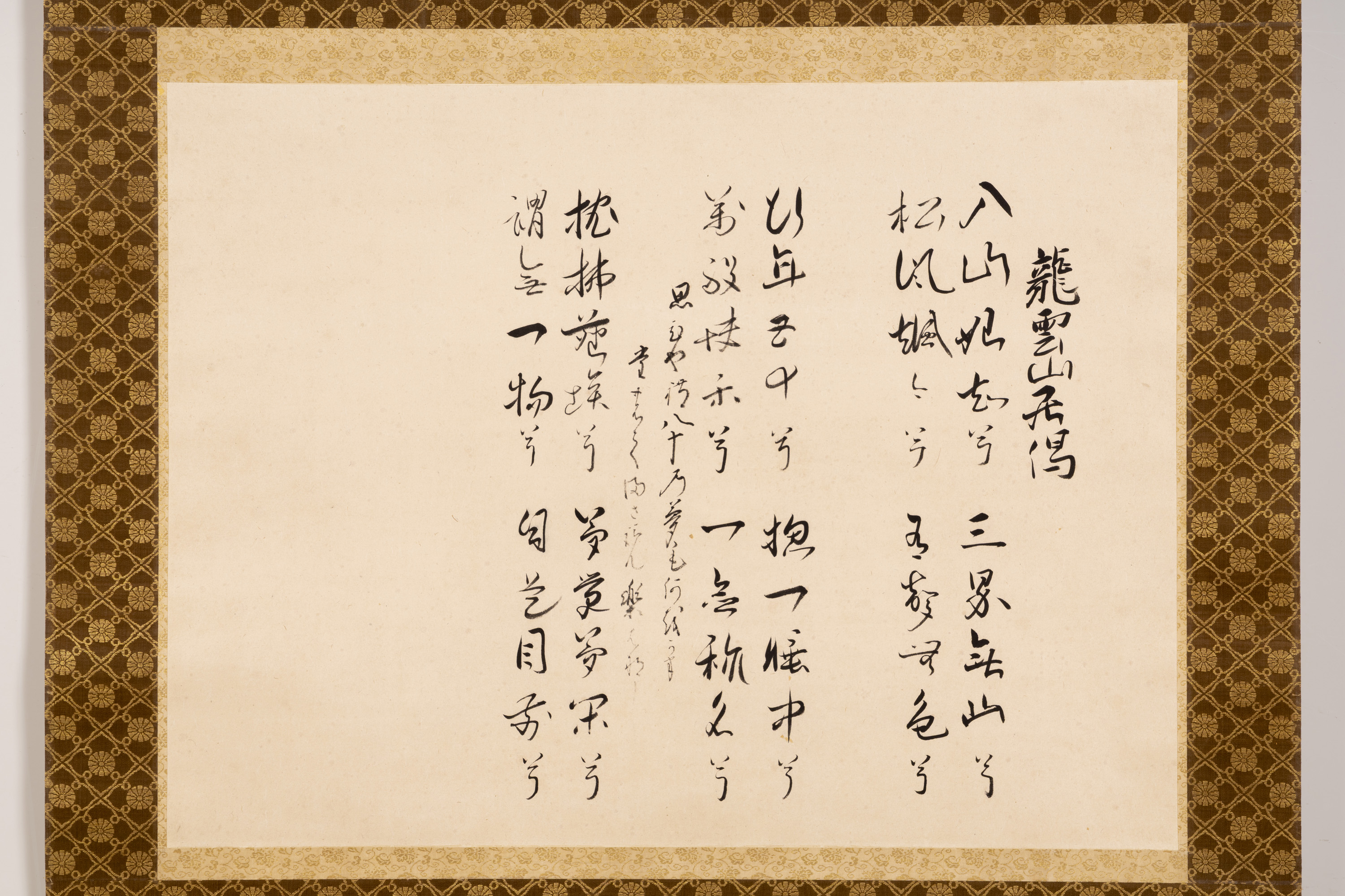 隠居して龍雲軒源英(りゅううんけんげんえい)と号した高松藩主松平家初代頼重(よりしげ)が、隠居の際の思いを漢詩に詠んで後水尾天皇(当時は退位して上皇)に書き送ったところ、年長の天皇が自身の心境を詠んだ和歌を行間に書き加えて答えたもの。頼重54歳、後水尾天皇80歳のそれぞれの胸中を伝える。