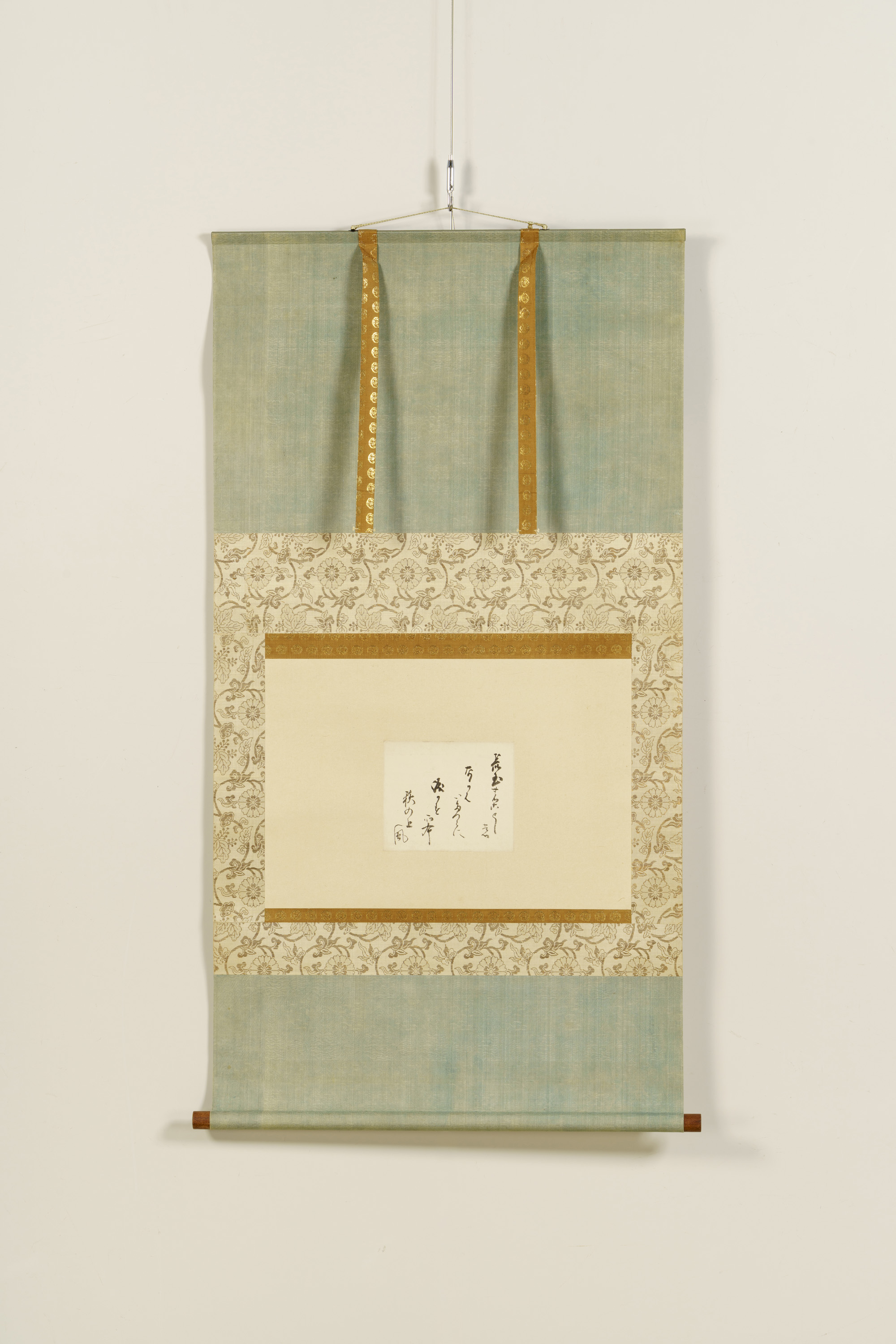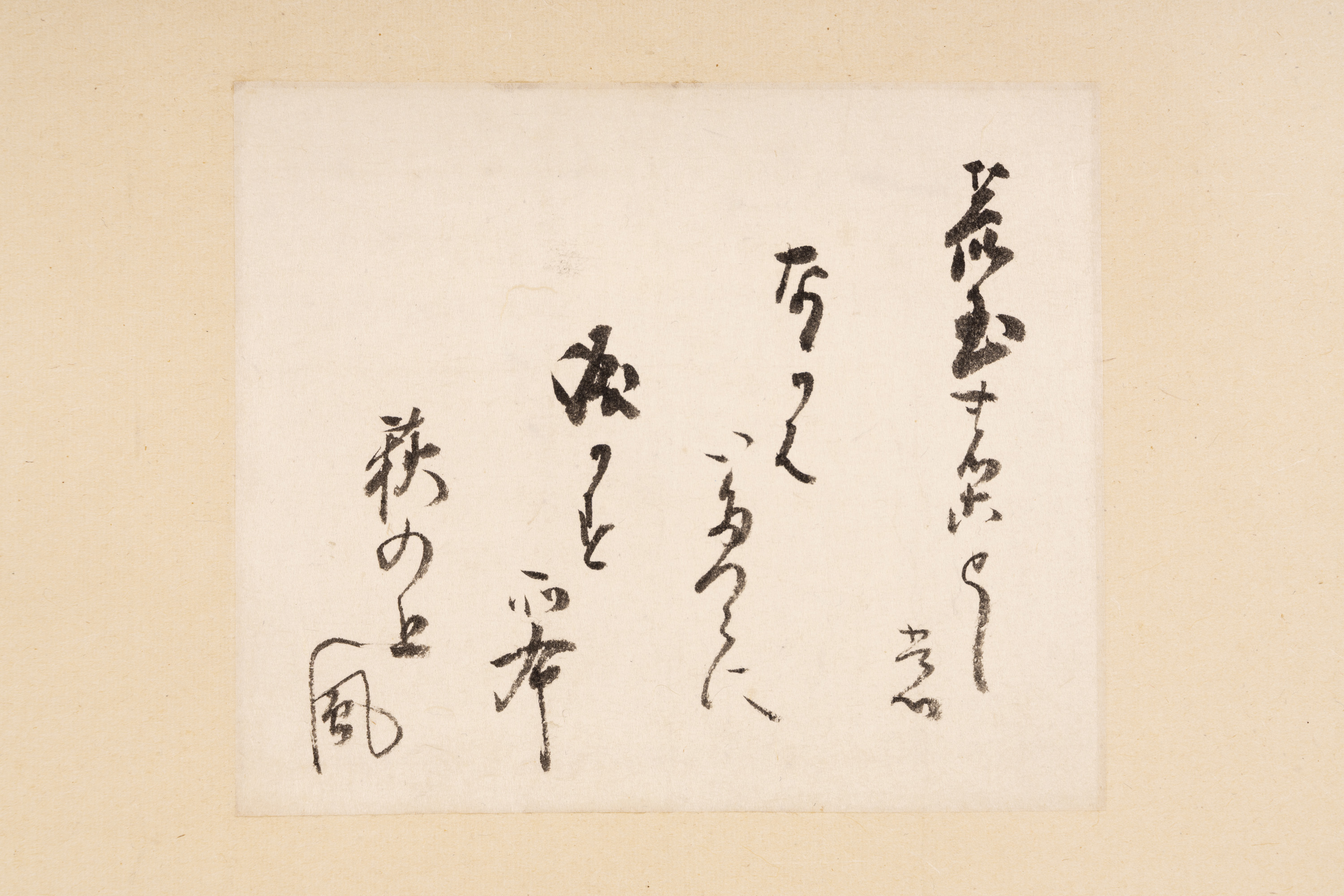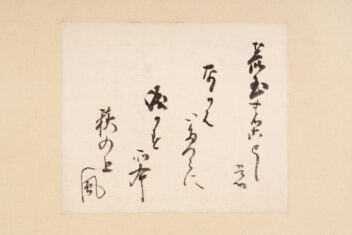 宸翰とは天皇が自ら記した書をいう。後水尾天皇は後陽成天皇(ごようぜいてんのう)の第3皇子。儀式などの先例について学ぶ有職故実(ゆうそくこじつ)や和歌などの学問に優れ、江戸時代の宮廷文化の礎を築いたほか、中世(12世紀後半-16世紀)に断絶した朝廷儀式の復興を目指した。本作品は『続後撰和歌集』に収められている藤原定家(ふじわらのさだいえ)の和歌を書いた色紙である。将軍の代理として儀式の際にたびたび参内し、後水尾天皇から直接和歌の添削を受けるなど交流が深かった高松藩主松平家初代頼重(よりしげ)が与えられたものとされる。
