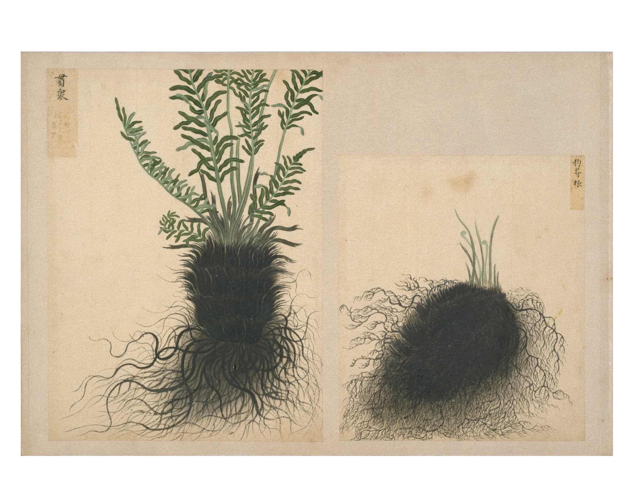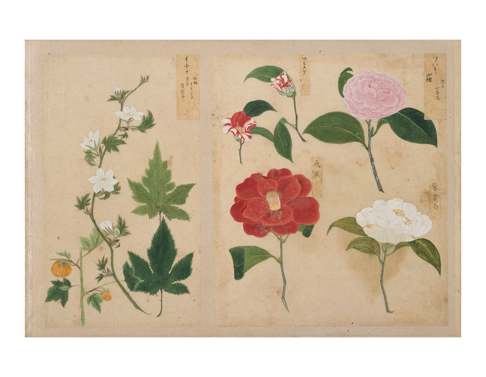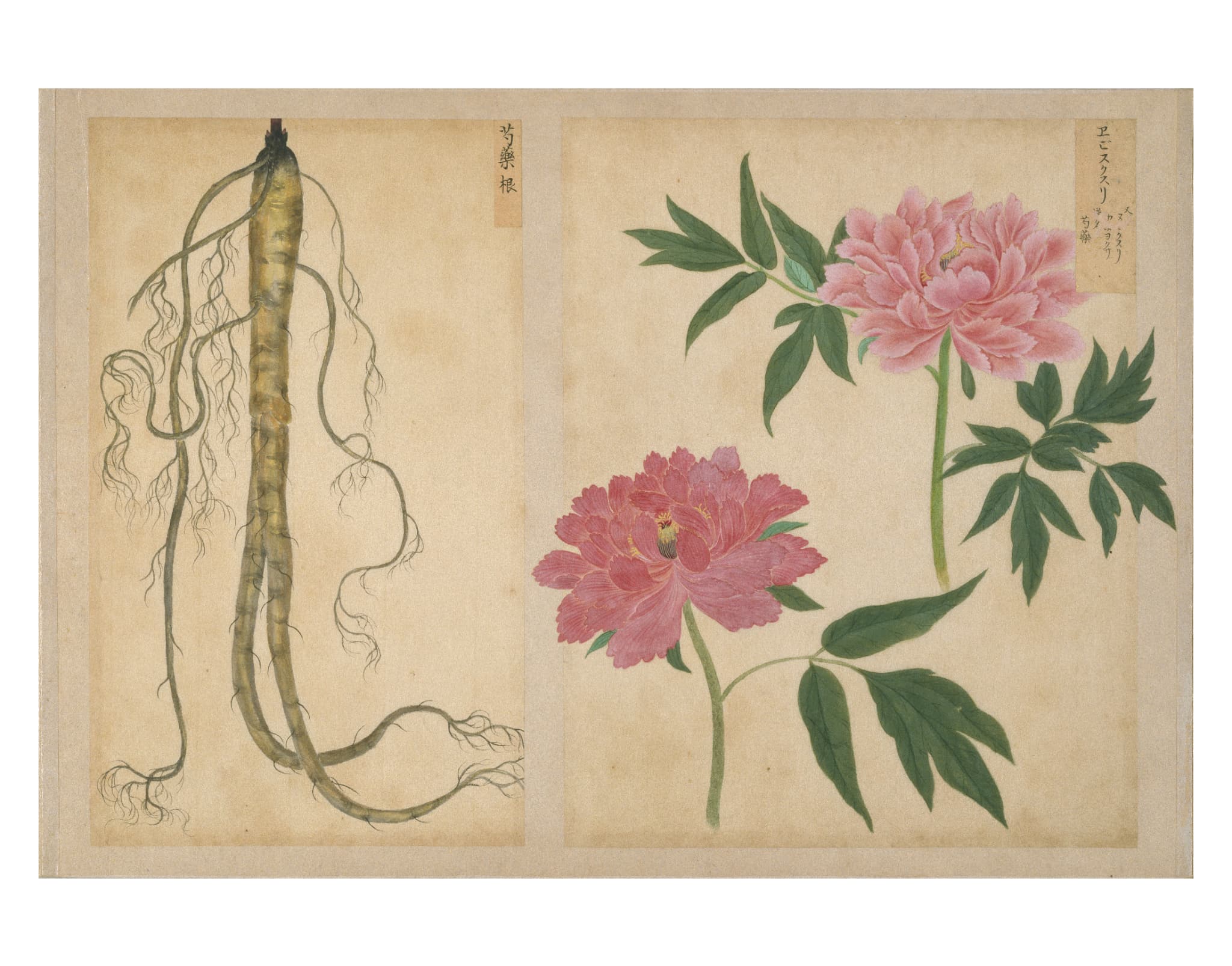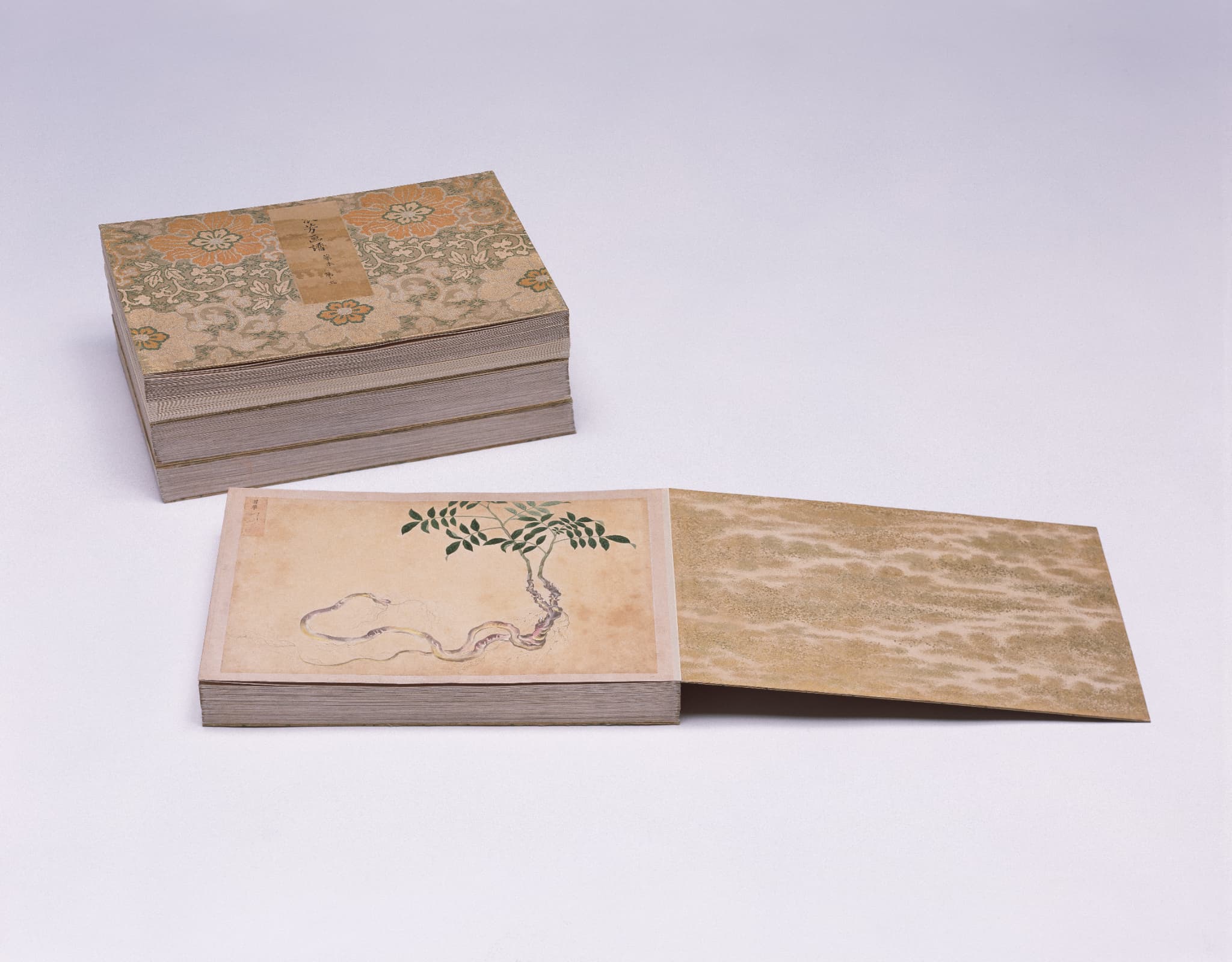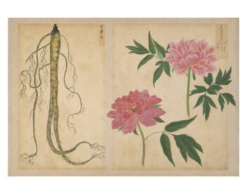 「衆芳画譜」は、高松藩主松平家に伝来する4種13帖の博物図譜のひとつで、薬草・薬木・花卉・花果の4帖の画帖からなる植物図鑑である。
