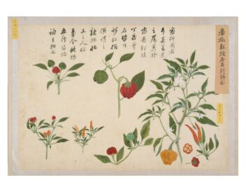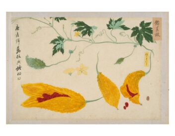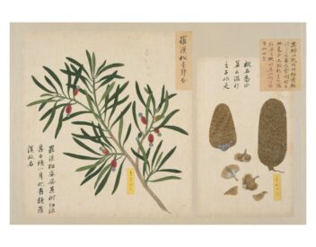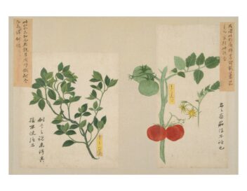 「写生画帖」は、高松藩主松平家に伝来する4種13帖の博物図譜のひとつで、菜疏(さいそ)・雑草(ざっそう)・雑木(ざつぼく)の3帖の画帖からなる植物図鑑である。