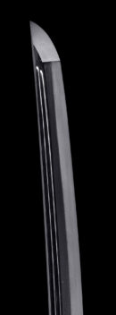 太刀の反りは時代ごとに変化し、特徴を示している。この太刀の反りはやや小さく、江戸時代前期(17世紀後半)の特徴のひとつである。刀身には2本の平行する溝が彫られており、これを二筋樋(ふたすじび)という。