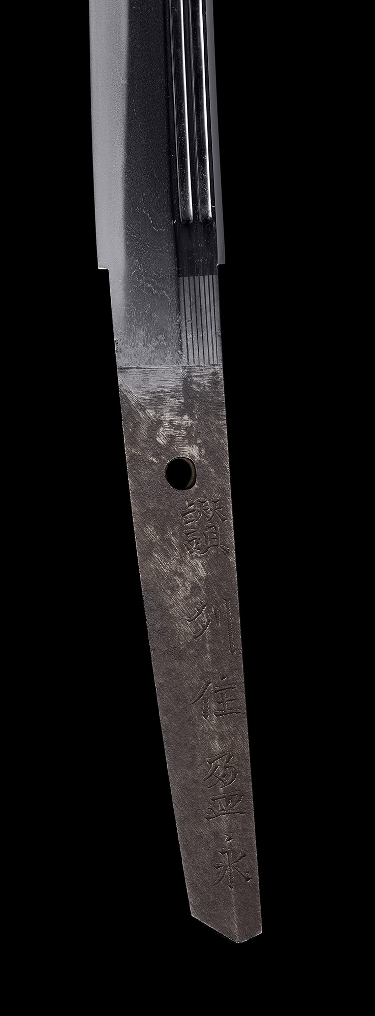 脇差 銘 讃州住盈永 わきざし めい さんしゅうじゅうみつなが 作者 讃岐国 盈永(さぬきのくに みつなが、?-1825) 時代 寛政9年(1797) 品質・員数 刀剣 1口 法量(cm) 刀身 刃長55.6 反り1.0 全長71.1 拵 全長76.2 分類 工芸 指定区分 高松市指定 収蔵番号 MY0#00333 解説 脇差とは短めの刀のことで、江戸時代の武士が身につける長い刀と一組にされたほか、武士以外の身分の者が身につける太刀でもあった。太刀の反りは時代ごとに変化し、特徴を示している。この太刀の反りはやや小さく、江戸時代前期(17世紀後半)の特徴のひとつである。刀身には2本の平行する溝が彫られており、これを二筋樋(ふたすじび)という。この脇差の作者・盈永は、江戸時代後半(18世紀末-19世紀初)に活躍した刀工で、大坂で太刀を造る技術を学び、讃岐国(現香川県)へ戻って高松藩主に召し抱えられた。江戸時代の記録から、盈永は高松城内に呼ばれ、藩主の前で太刀を造ったことが分かっている。この脇差は太刀の外装である「拵」(こしらえ)とともに伝わっている。この拵には、高松藩主松平家の家紋「丸に三葵紋」の金具が付いている。 関連作品 青貝微塵塗鞘および大小拵 蒟醬色紙箱「遙か」 金彩遊禽水指 彫金スタンド 作品をさがす リセット キーワード検索 分類 すべて 絵画(国内) 絵画(国外) 彫刻 工芸 書 デザイン 民俗資料 その他 指定区分 すべて 国宝 重要文化財 重要美術品 県指定 市町指定 検索