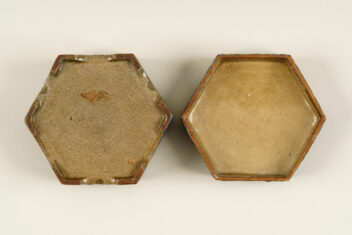 香合は、香を入れる蓋付の器で、陶磁器製の品の他に、漆器や金属製のものもある。茶席を飾る品としても用いられ、小さな作品が多い中、本作は大ぶりである。