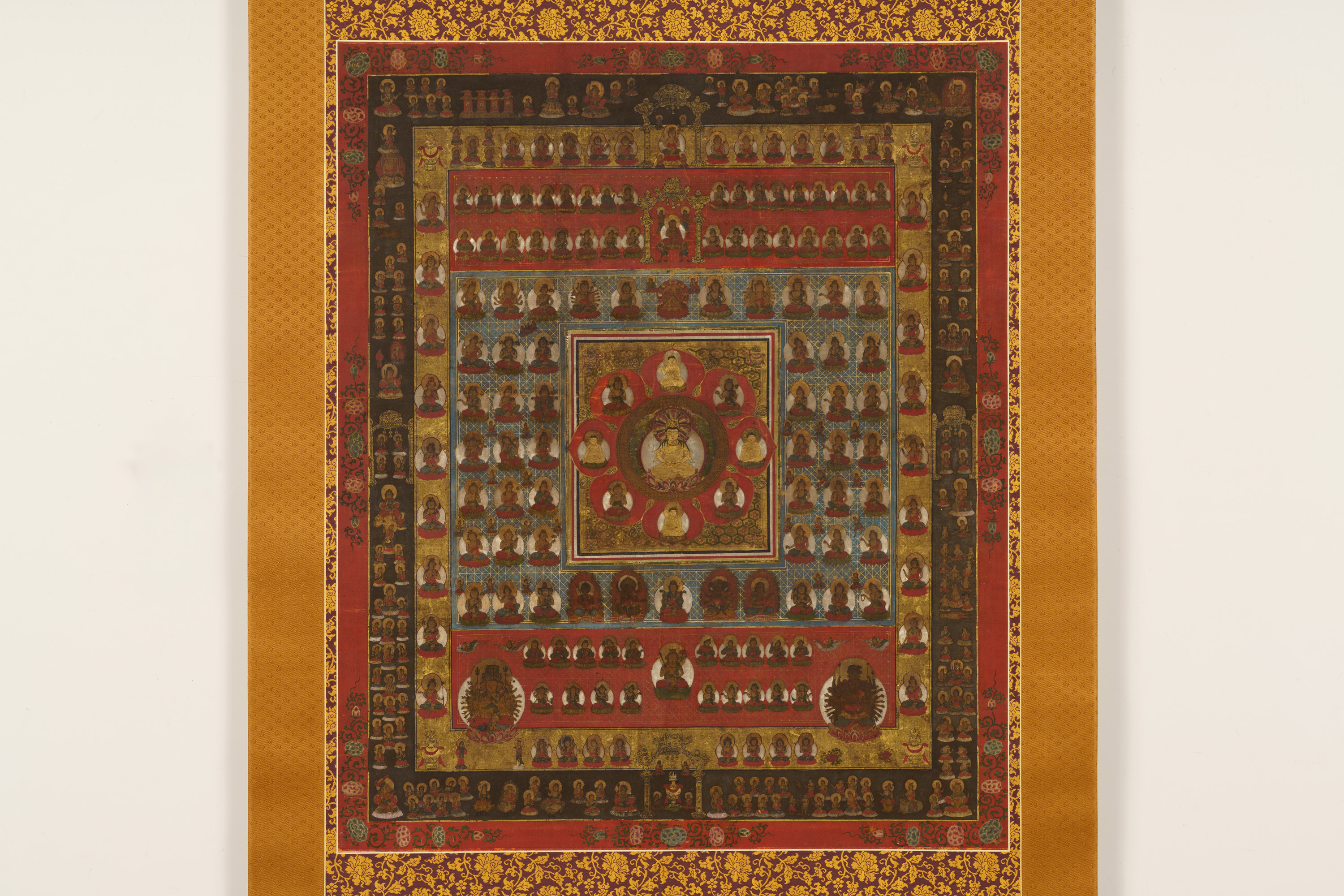 両界曼荼羅は、真言密教の根本経典である『大日経(だいにちきょう)』と『金剛頂経(こんごうちょうぎょう)』の教義を視覚化したものである。胎蔵界(たいぞうかい、正式名「大悲胎蔵生曼荼羅」、たいひたいぞうしょうまんだら)と金剛界曼荼羅(こんごうかいまんだら)の2幅が対となり、密教の儀式では東西に並べて安置され、修法のよりどころとされた。