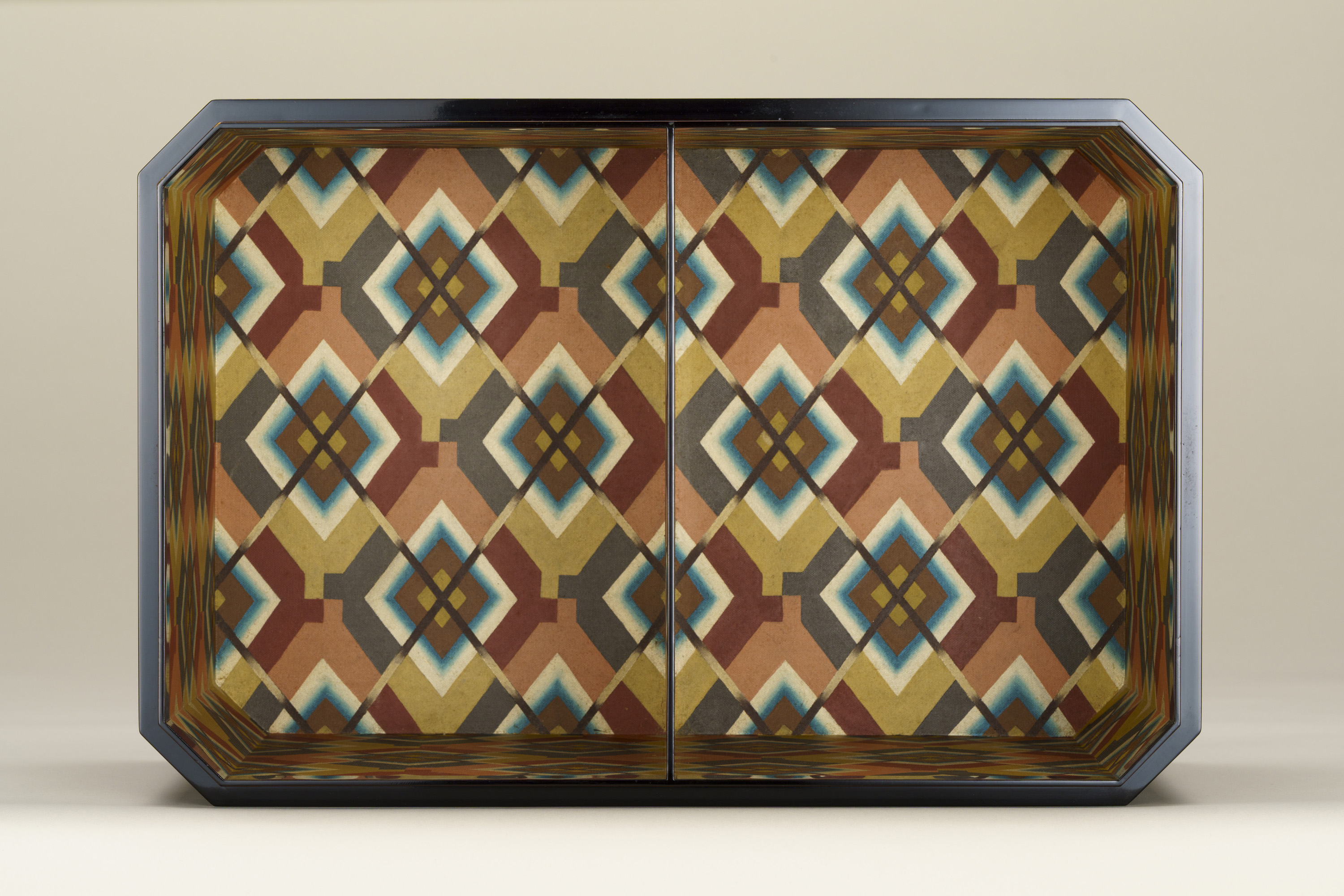 作者は香川郡宮脇村(現・高松市)生まれ。香川県立工芸学校(現・香川県立高松工芸高等学校)用器漆工科卒業。明治から昭和(戦前)にかけて世界を舞台に活躍した大阪の東洋古美術商の山中商会に入り、中国や日本の古美術品修理等に従事し、塗りや加飾の技法を学んだ。岡山大学教授、香川県漆芸研究所員等として、後進の育成にも尽力した。昭和31年(1956)、重要無形文化財「蒟醬」保持者認定。本作品は、第12回帝国美術展覧会(帝展:帝国美術院主催の官展)入選作。