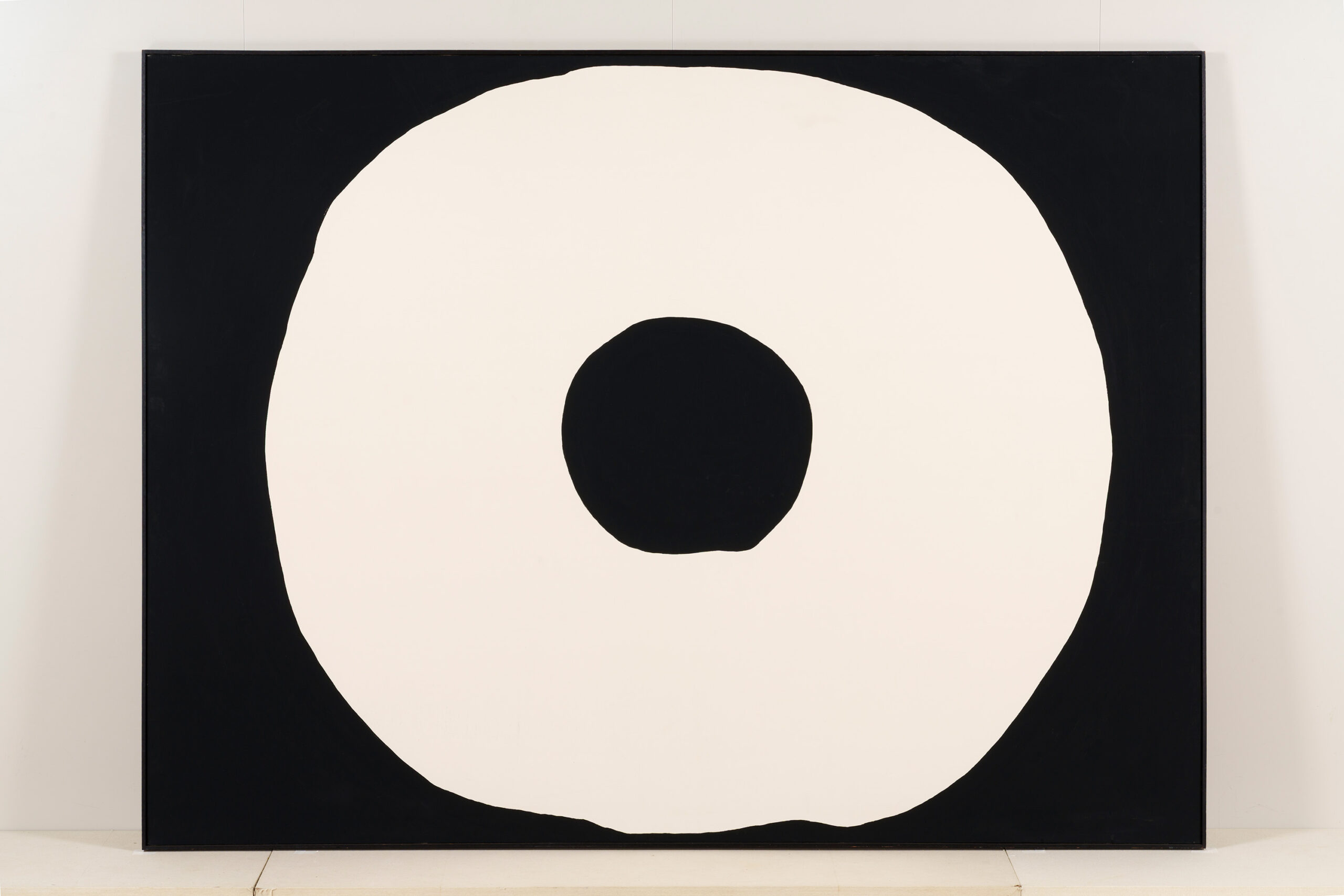 作品(黒地に白円) さくひん(くろじにはくえん) 作者 吉原治良(よしはら じろう、1905-1972) 時代 昭和46年(1971) 品質・員数 油彩、カンヴァス・1面 法量(cm) 縦192.0 横260.0 分類 絵画(国内) 収蔵番号 BK1#00458 解説 一見すると、黒地に白の絵の具をのせたように見えるが、実際には白い下地を残したうえで黒の油絵具を重ねて描いている。このように、絵画を見る者が想像する描き方と実際の描き方を異なるものにすることで、見る者に「描く」ことを問いかけている。作者は大阪府生まれ。昭和9年(1934)、文部省美術展覧会(文展)の洋画部門に対して新進作家が大正3年(1914)に設立した団体の「二科展」に初入選し、昭和16年二科会会員となった。昭和29年、既成概念の打破に取り組んだ前衛美術グループ「具体美術協会」を設立し、代表を務めた。 関連作品 晩夏 窟院の朝 人麻呂・小町・喜撰図(松平頼重和歌幅) ひろがり 作品をさがす リセット キーワード検索 分類 すべて 絵画(国内) 絵画(国外) 彫刻 工芸 書 デザイン 民俗資料 その他 指定区分 すべて 国宝 重要文化財 重要美術品 県指定 市町指定 検索