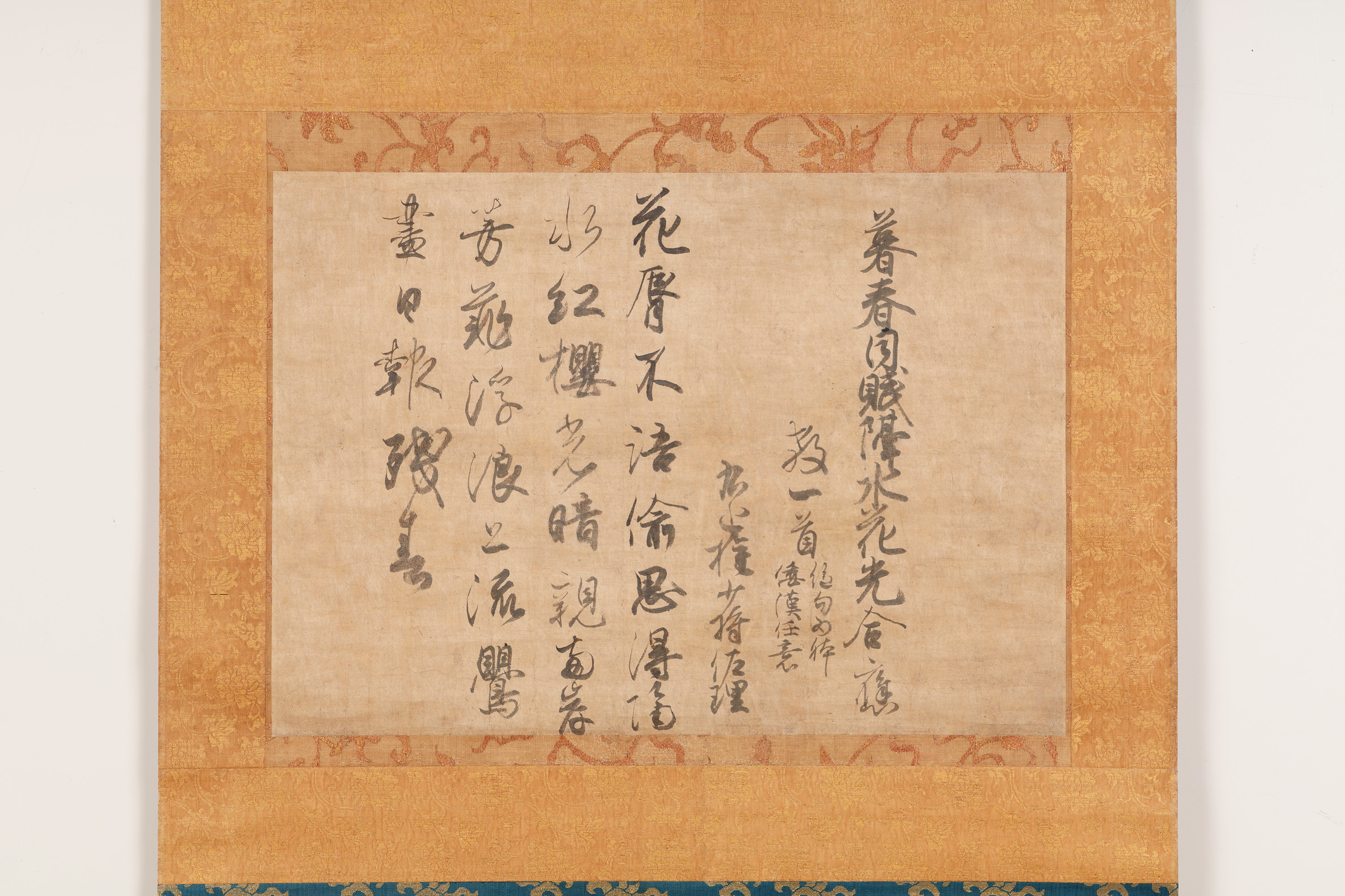 懐紙とは、貴族が衣服の懐に忍ばせて用いた「ふところがみ」であり、そこに詩文を書き記したものを「詩懐紙」と呼ぶ。