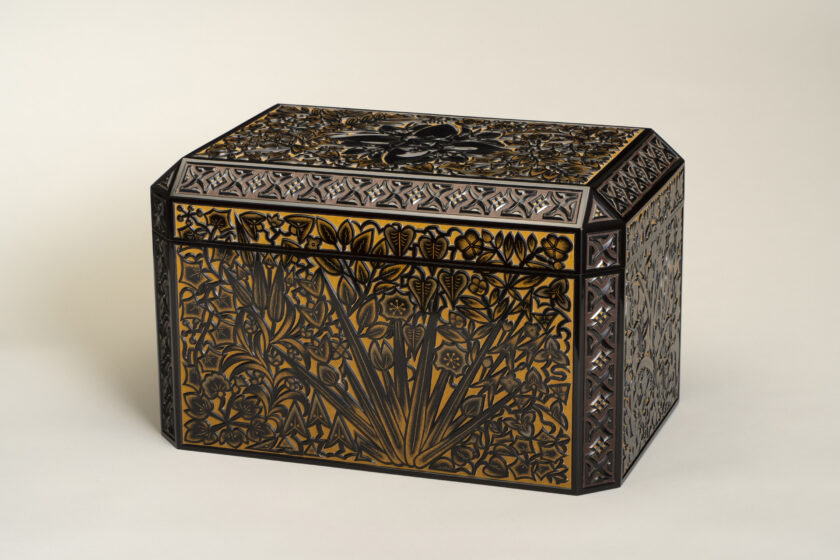Carved Lacquer Box with Trailing Gentian Motif