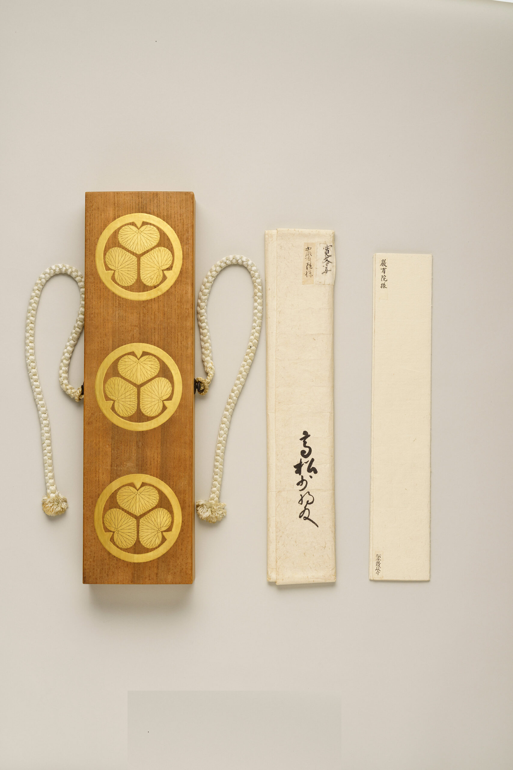 During the Edo period, a daimyo (region lord) could exercise authority over land and its inhabitants only with formal recognition from the shogun. This recognition took the form of a letter of enfeoffment (ryōchi ategaijō),which was given to each daimyo upon the succession of a new shogun. In the original document, the section marked “御判 (gohan)” beneath the date bore Tokugawa Ietsuna’s kaō (stylized signature). Because the original letter of enfeoffment was submitted to the new government in the Meiji period, it is no longer held by the Takamatsu Matsudaira family, but a complete set of Edo-period copies has been preserved. Together, they constitute important documents symbolizing the Matsudaira family’s status as lords of the Takamatsu domain.