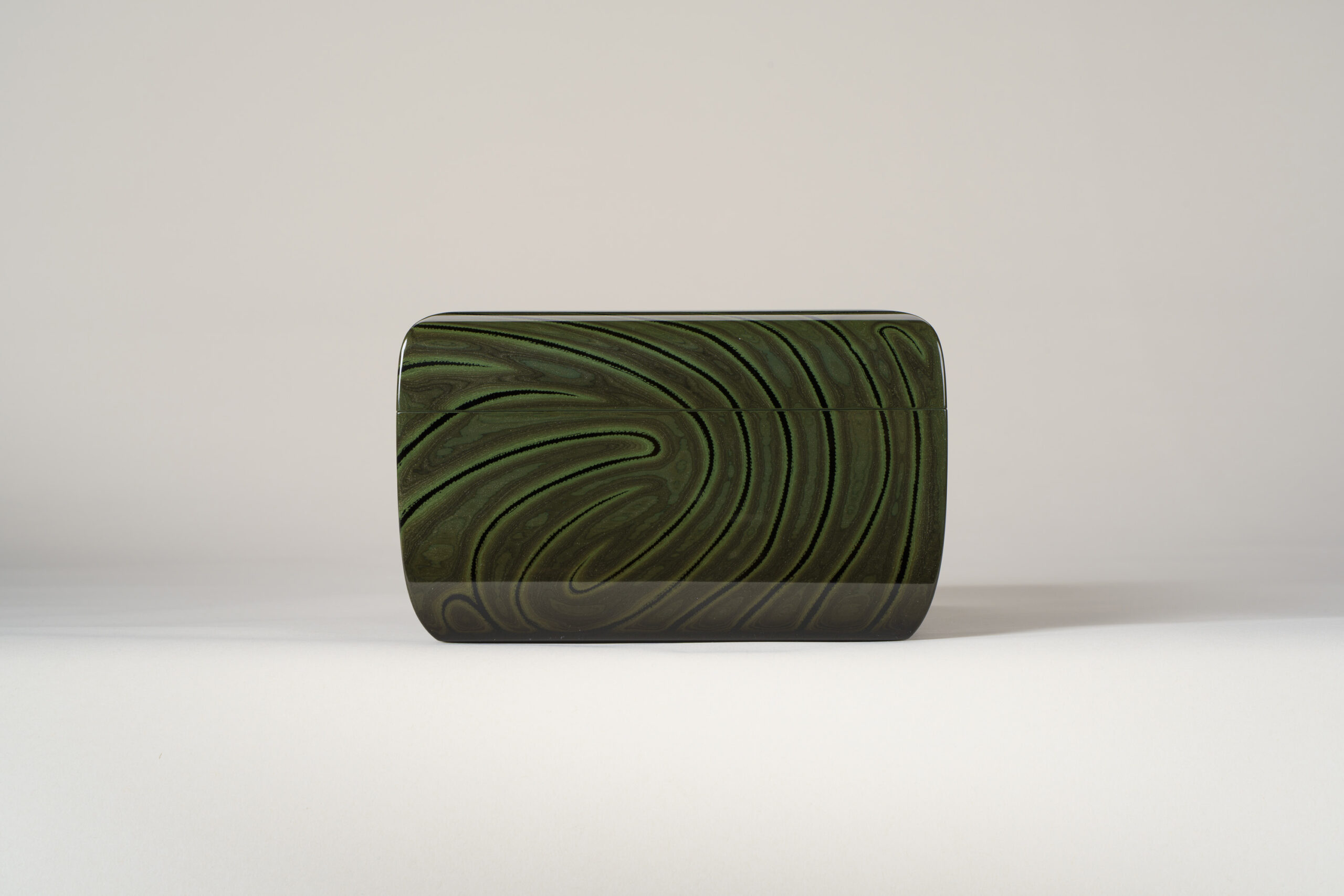 Isoi Masami was born in Takamatsu City. He learned lacquer art techniques at Daidō Kōgei Bijutsusha, a lacquerware manufacturing company founded by his father, Isoi Joshin, to support artists returning from overseas after the war. In 1985, Isoi Masami was designated a Holder of an Important Intangible Cultural Property, Kinma. This work was selected for the Thirty-second Japan Traditional Art Crafts Exhibition.