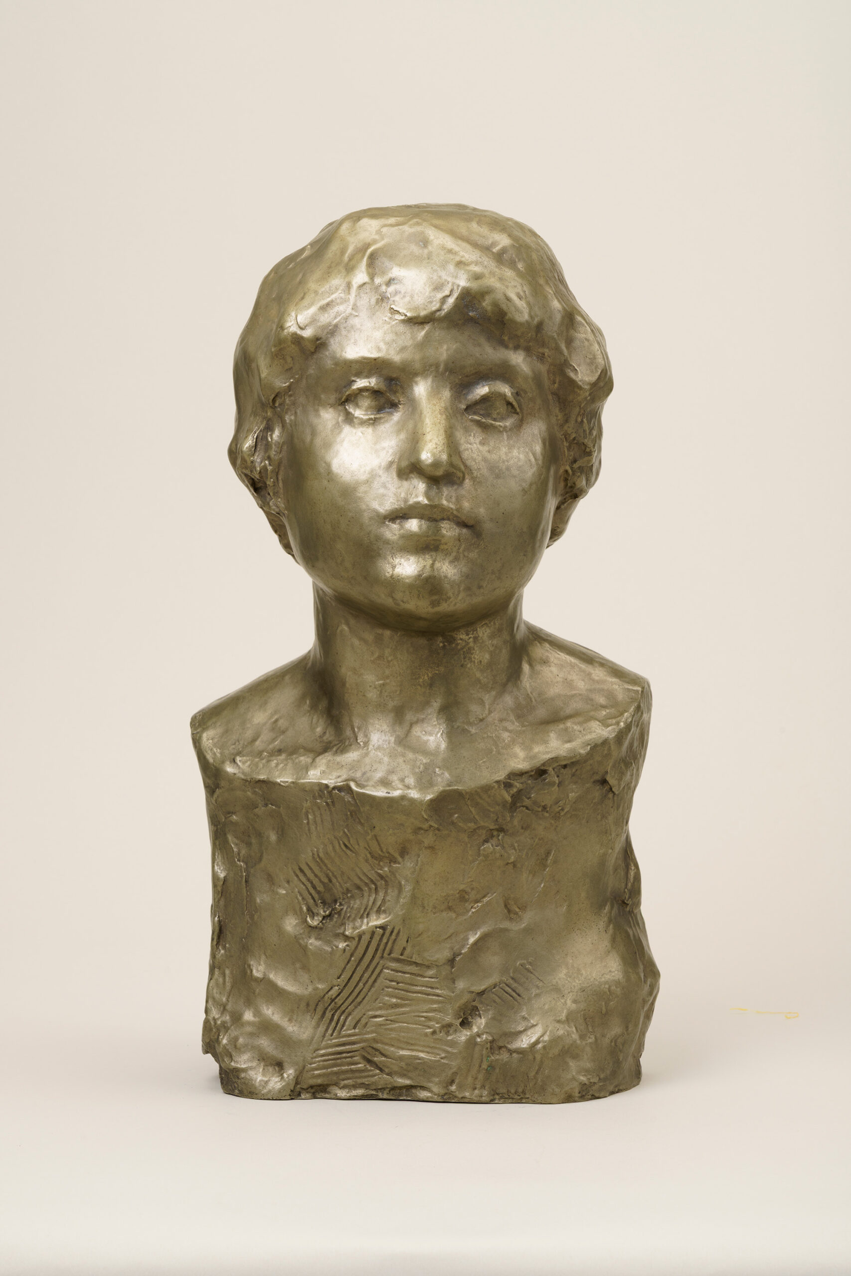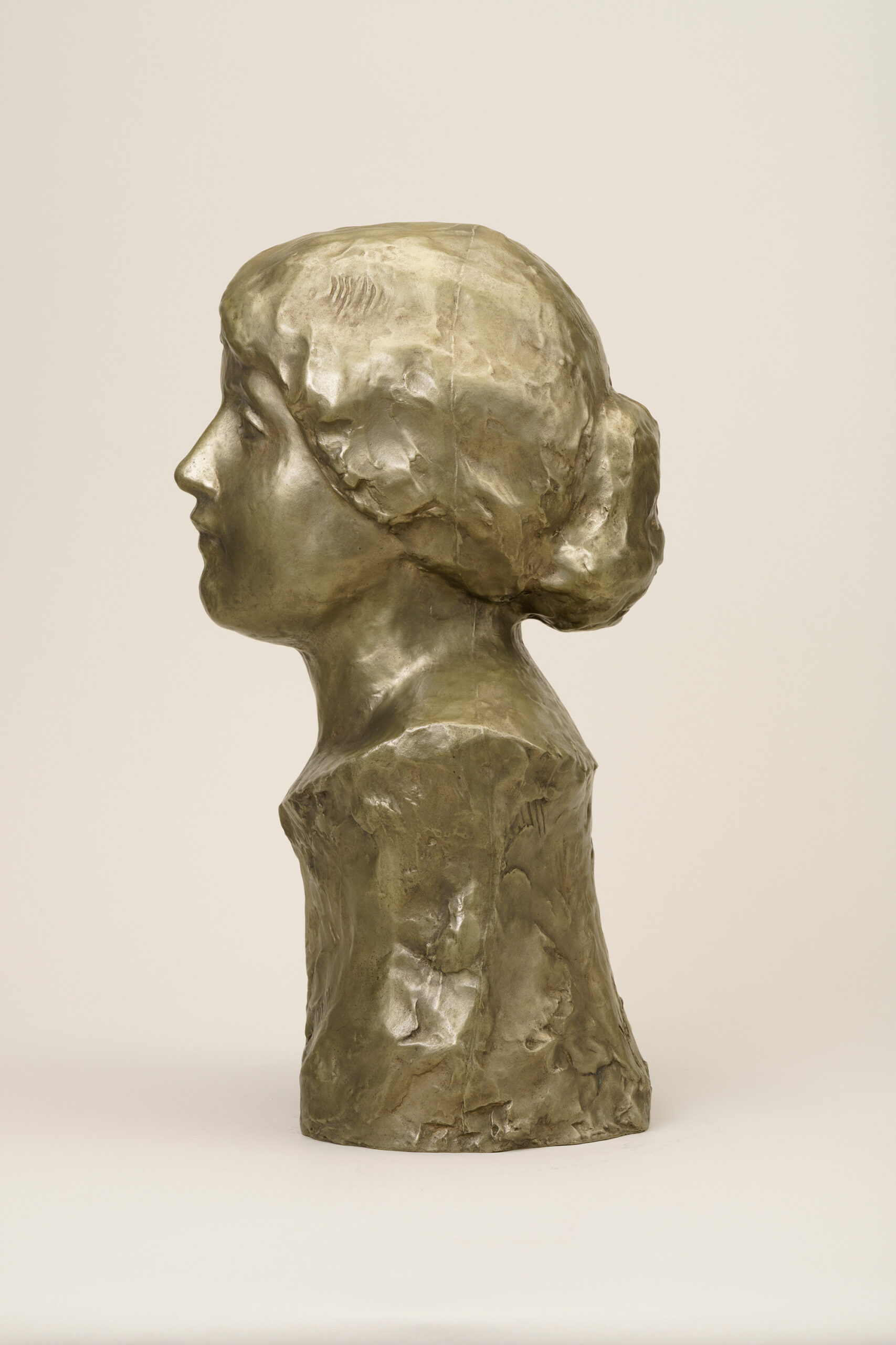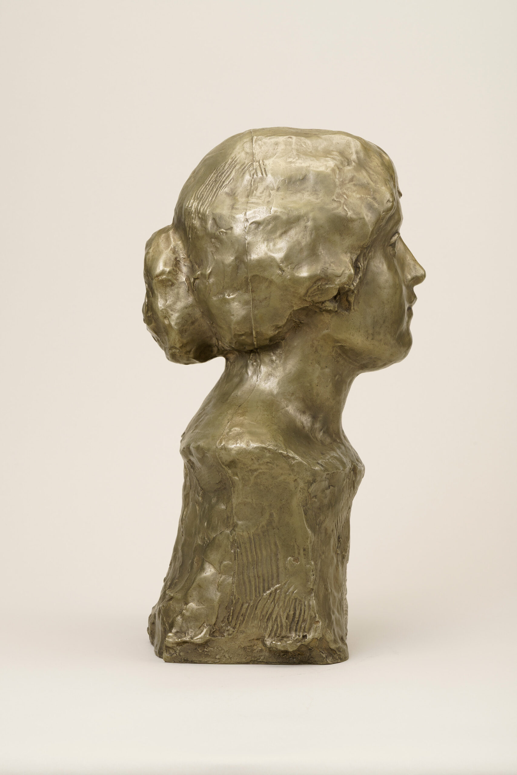 This bust depicts a woman whose gaze conveys warmth and whose presence is marked by quiet elegance. The work was created during Fujikawa’s period of study in France, and he is said to have kept the original plaster model with him even after returning to Japan. Although he deeply admired Auguste Rodin, who is often regarded as the father of modern sculpture, and studied his sculptural practices firsthand, Fujikawa’s works lack the emotional intensity characteristic of Rodin. Instead, they are marked by gentle modeling and a sense of stable weight, conveying a calm and humane sensibility. This work was cast in cupronickel and produced in 1970, thirty-five years after the artist’s death. Fujikawa was born into the family of a lacquer craftsman in Furujinmachi, Kagawa District (present-day Takamatsu City). He graduated from the Kagawa Prefectural School of Crafts (now Kagawa Prefectural Takamatsu Technical High School) in 1903, and from the Tokyo School of Fine Arts (now Tokyo University of the Arts) in 1908. Selected as an overseas trainee by the Ministry of Agriculture and Commerce, he traveled to France and was an assistant in Auguste Rodin’s studio, becoming one of the few Japanese artists to gain direct, practical insight from Rodin into the fundamentals of sculpture. He returned to Japan in 1916. In 1919, he became the first sculptor to be admitted as a member of the Nika Association, an independent artists’ group formed in opposition to the government-sanctioned Ministry of Education Art Exhibition. There he contributed to the establishment of its sculpture division, leaving a lasting mark on the history of modern Japanese sculpture.