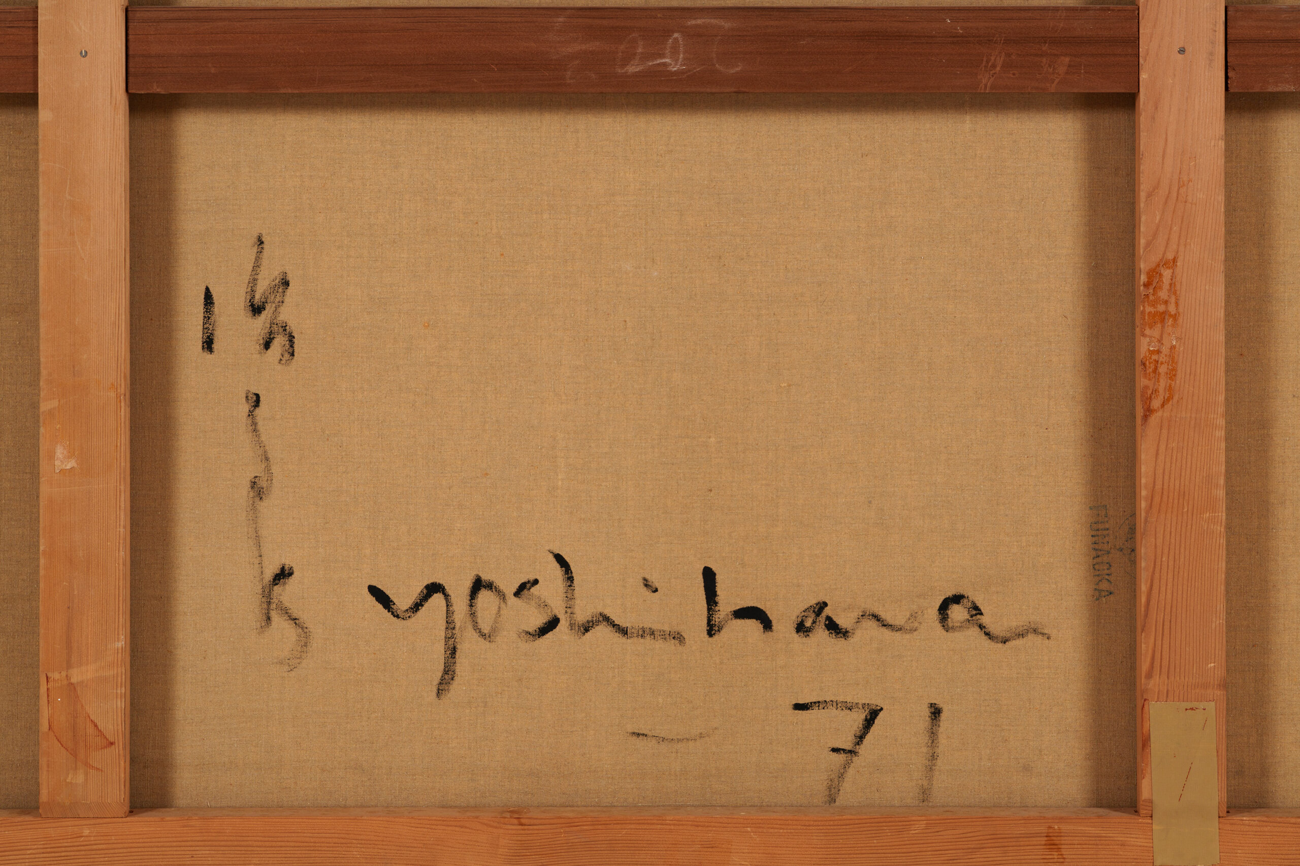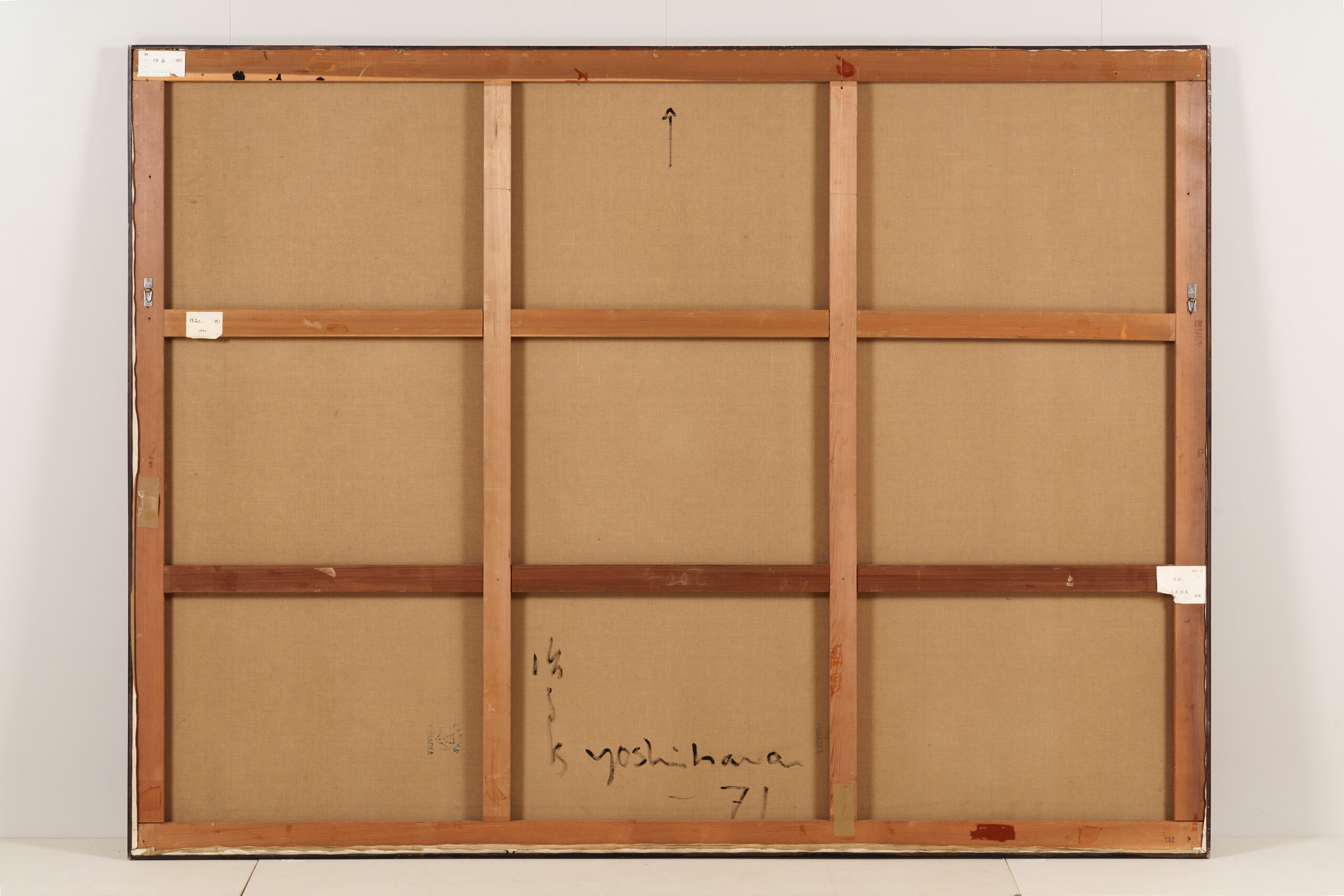 At first glance, the work appears to consist of white paint applied on a black background. In fact, however, it is created by leaving areas of the white background exposed and laying black oil paint on top of it. By deliberately creating a disjunction between the method of painting the viewer imagines and the method actually employed, the work prompts reflection on the very act of painting itself. Yoshihara Jirō was born in Osaka Prefecture. In 1934, he was selected for the first time for the Nika Exhibition, an artists’ association founded in 1914 by emerging painters in opposition to the Ministry of Education Art Exhibition (Bunten). He became a member of the Nika Association in 1941. In 1954, he founded and led the avant-garde Gutai Art Association, dedicated to breaking with established conventions.