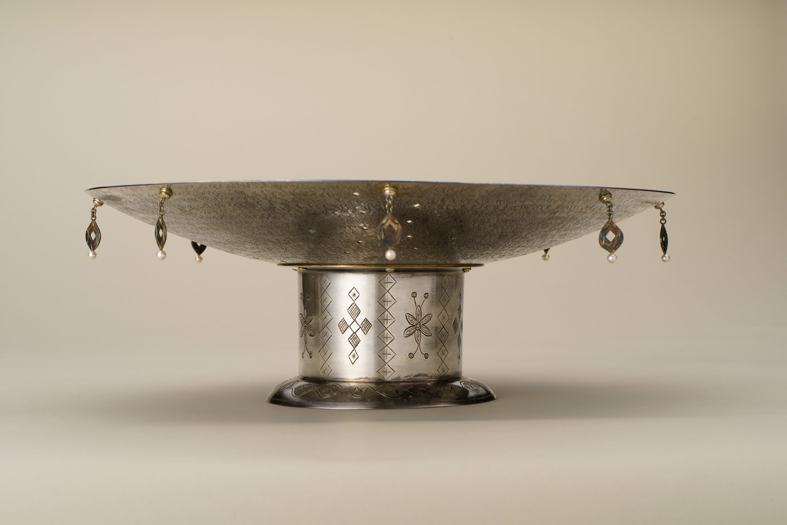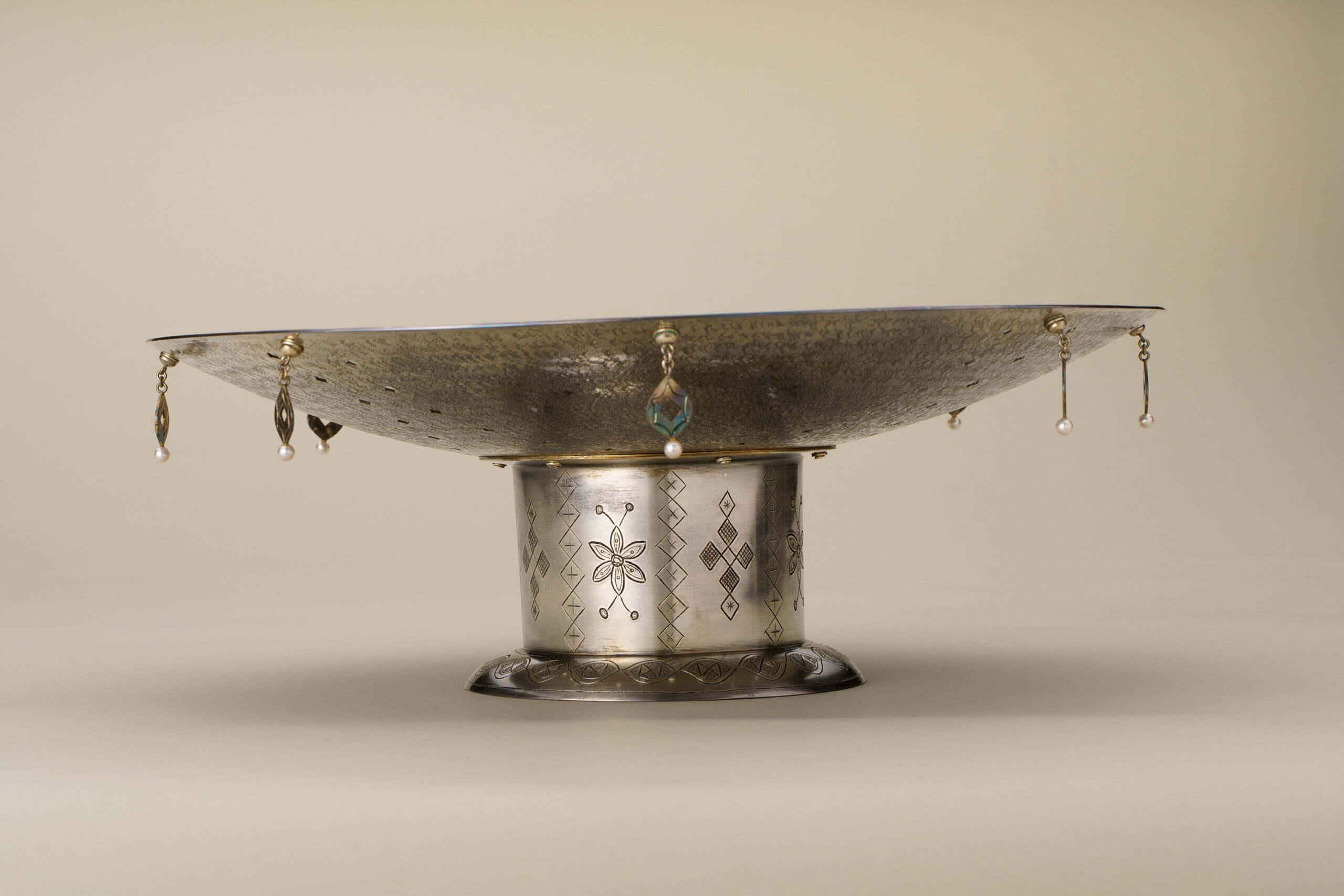 Engraved Metal Serving Vessel with Early Autumn Motifs