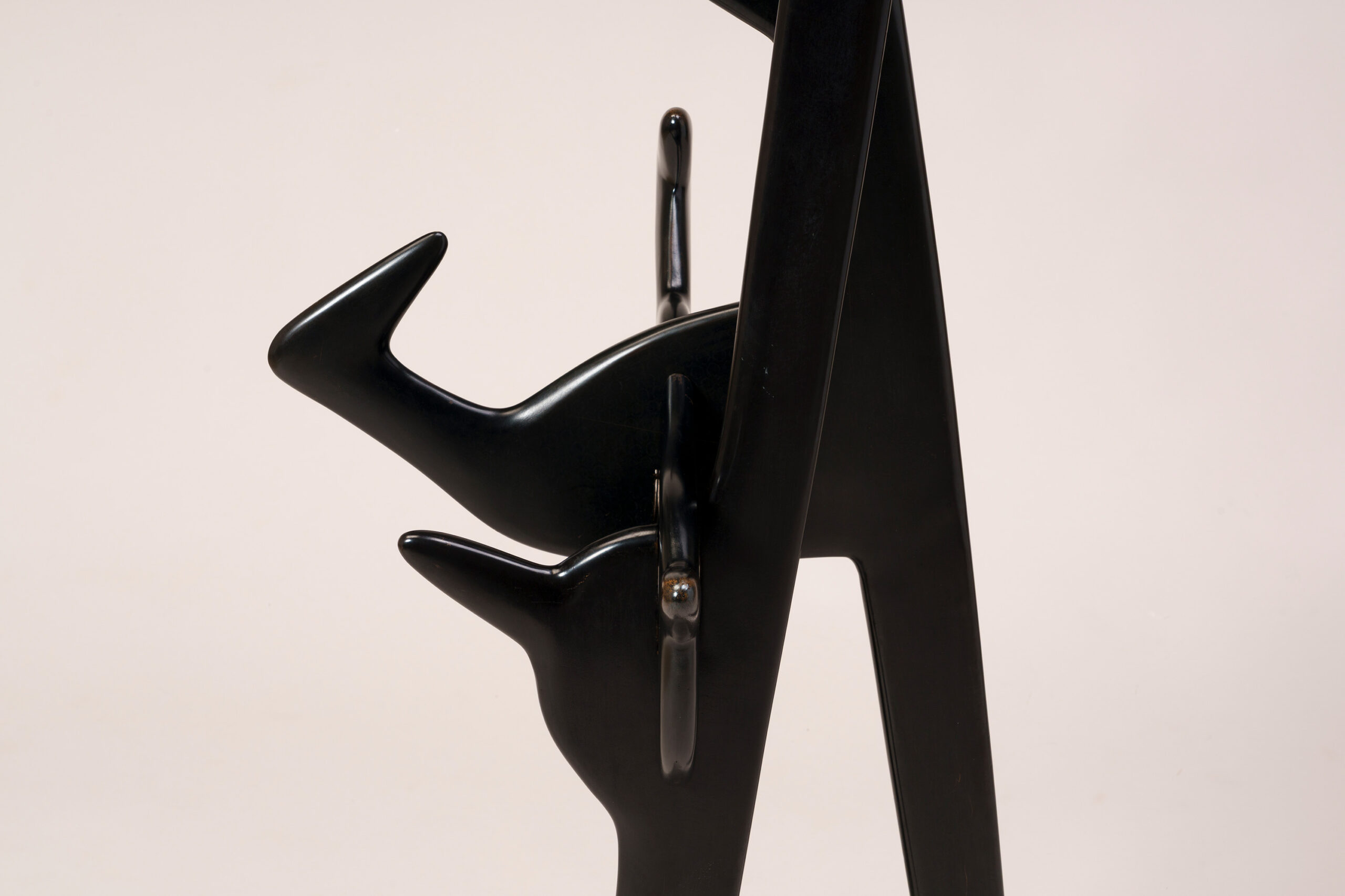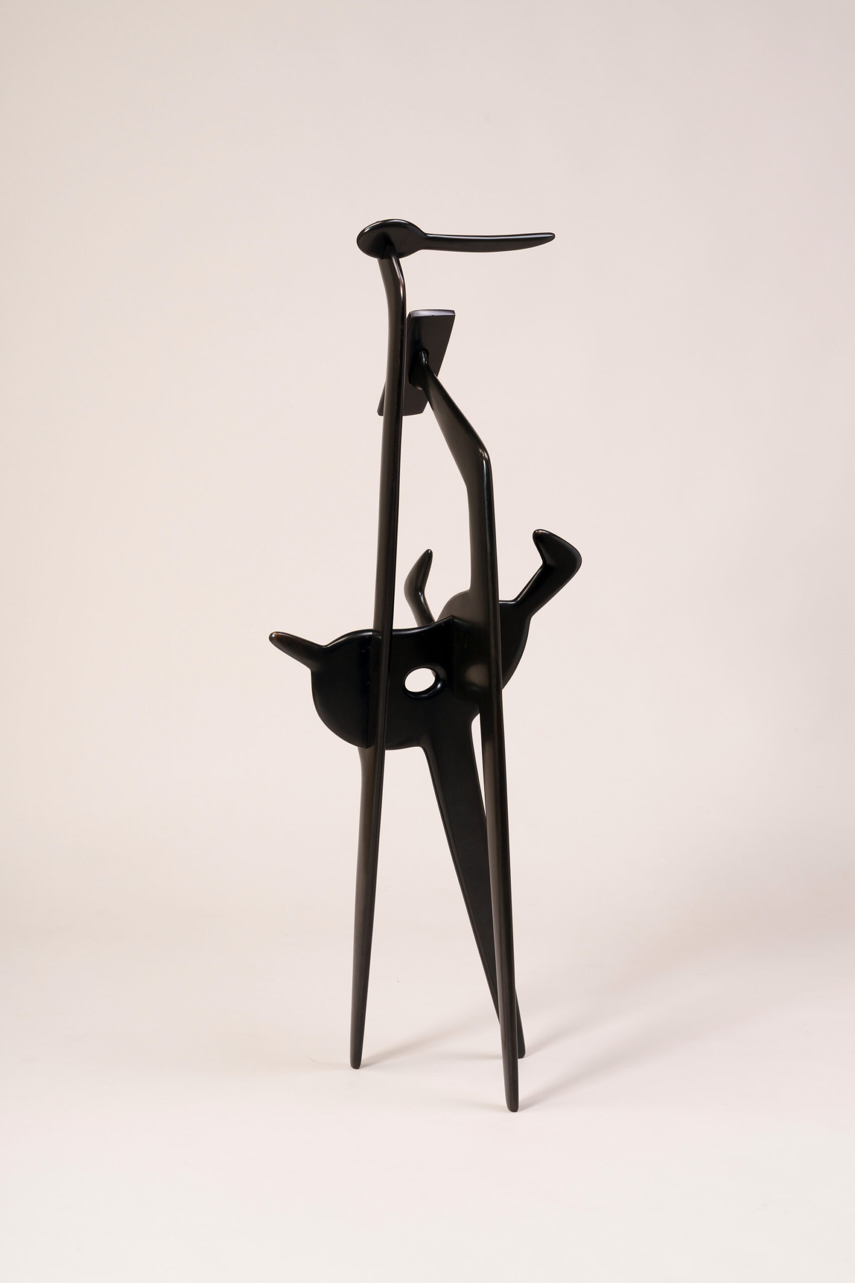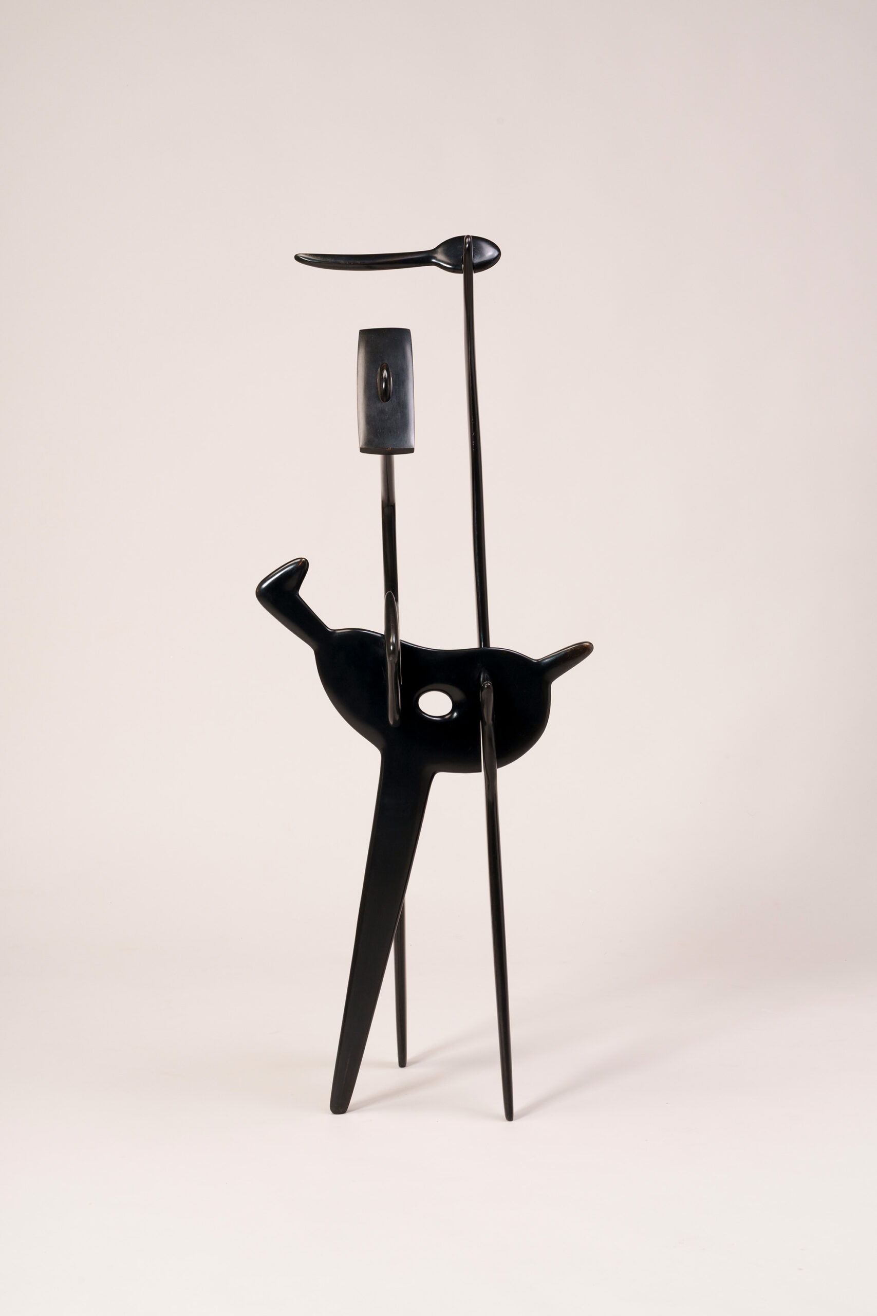 This sculpture depicts a bird with elongated legs. Upon closer inspection, it reveals an uncanny form with three legs and two heads. This enigmatic appearance activates the viewer’s imagination. The work is formed from thin, plate-like components assembled into a complex structure. While the original model was made by cutting and assembling slate, this version was produced by casting each component and assembling them in bronze. The method of cutting flat planes and joining them together echoes the principles of traditional Japanese wooden joinery. Isamu Noguchi, one of the foremost sculptors of the twentieth century, was born to Japanese poet Noguchi Yonejirō and American writer Léonie Gilmour. In his later years, he established a studio in Mure-chō, Kagawa Prefecture (present-day Takamatsu City).