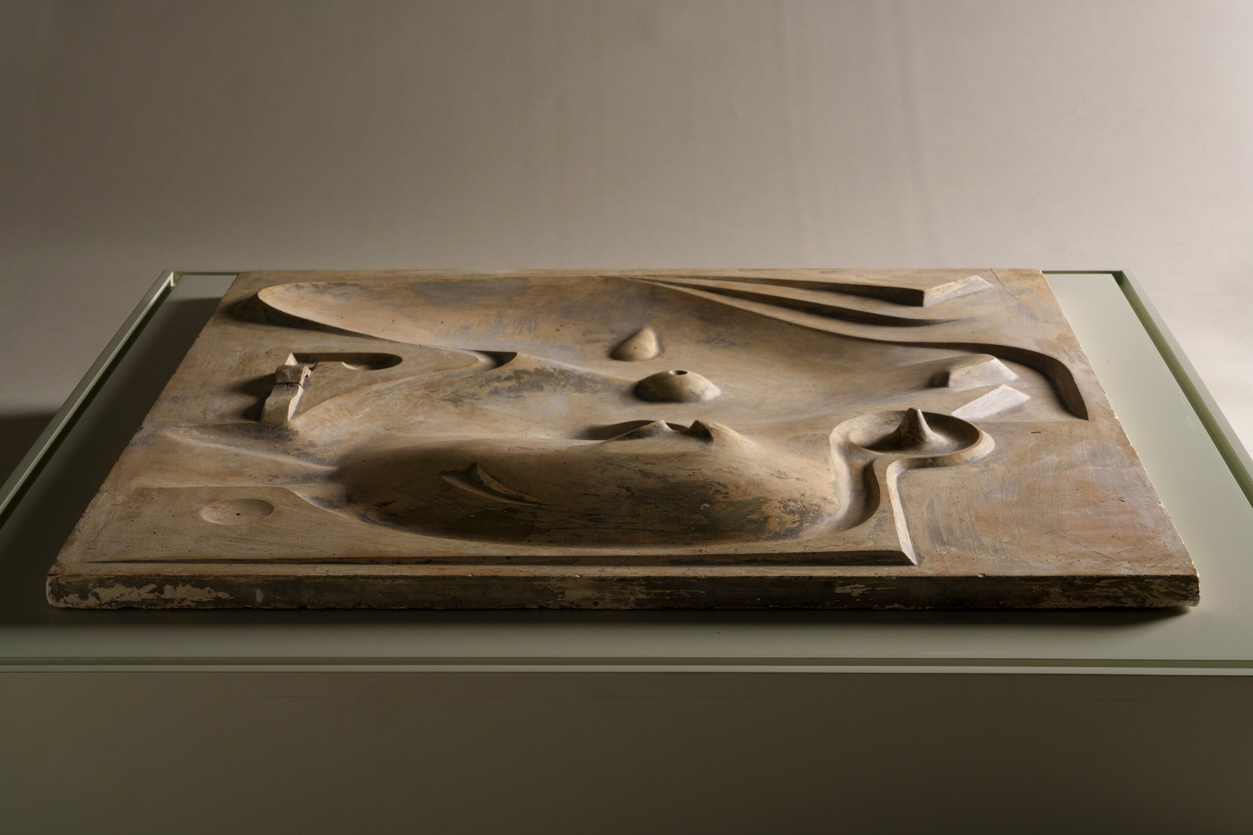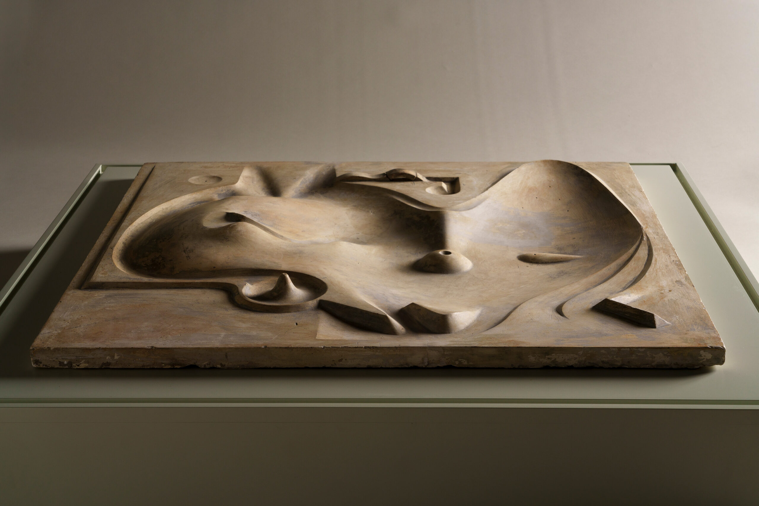 This work appears as an abstract sculpture composed of softly contoured forms. Viewed from above, however, it reveals gentle hill-like rises, basin-shaped depressions reminiscent of man-made ponds, and bridge-like elements, evoking aspects of a Japanese garden. The piece is a model for an unrealized park that the artist conceived for Central Park in New York. Noguchi’s practice extended beyond sculpture to encompass the creation of landscapes that bridged art and society.