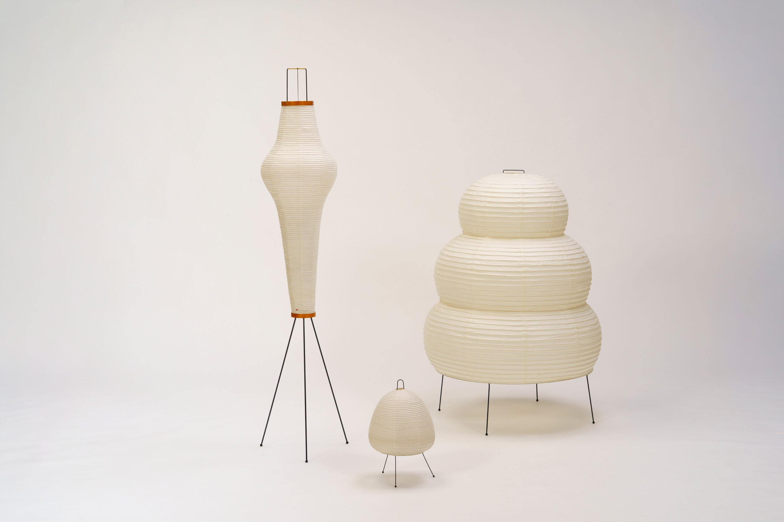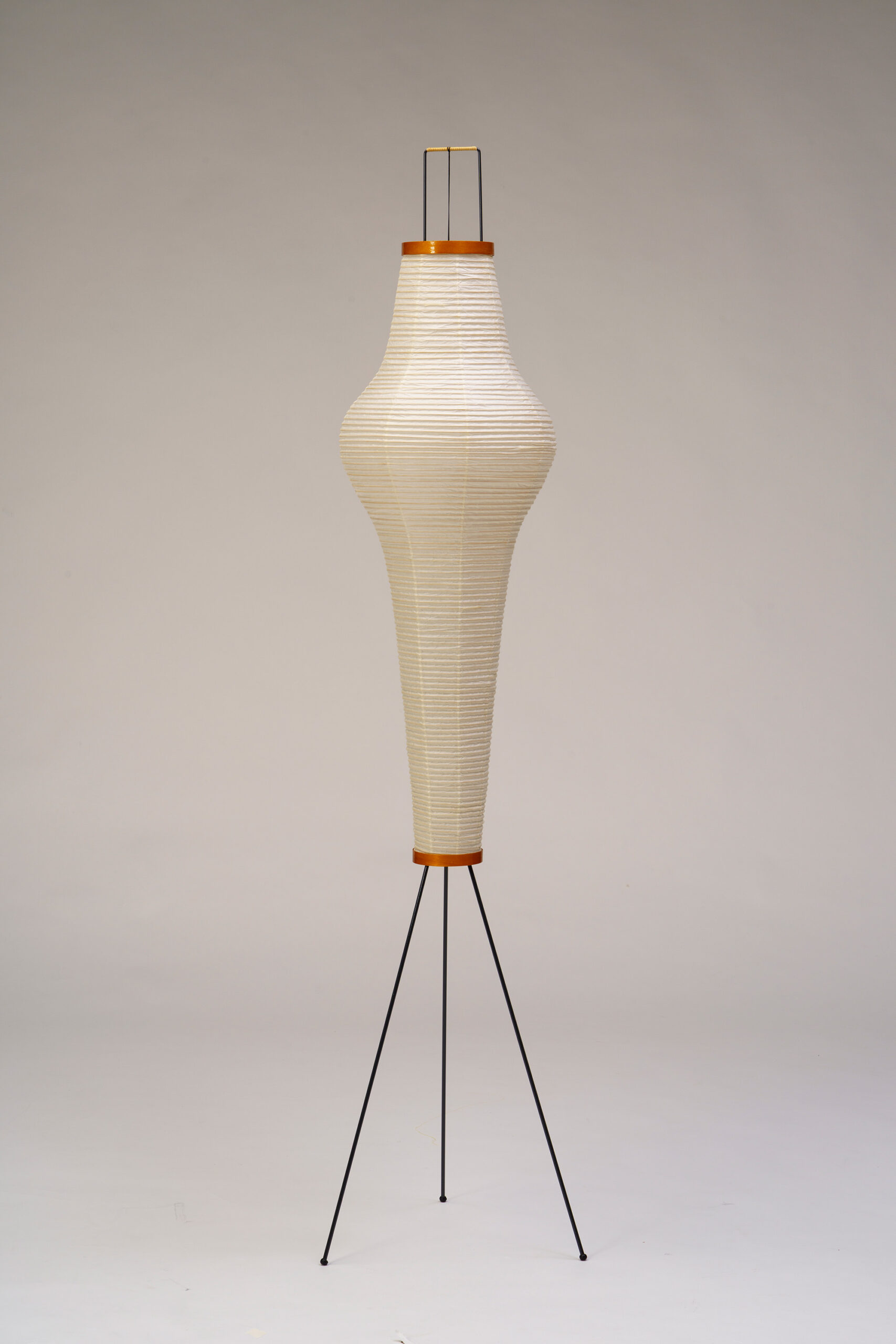 Designed by the sculptor Isamu Noguchi, Akari is a series of light sculptures made from bamboo ribbing and traditional Japanese washi paper. First conceived in 1951, this series of designs was inspired by traditional paper lanterns that Noguchi encountered in Gifu while traveling to Hiroshima to design an unrealized Memorial to the Dead of Hiroshima. Noguchi continued to develop Akari throughout his later years, creating approximately 200 variations. Working with lanterns made of bamboo and washi paper, he arrived at a new direction for sculpture: the radical insight that objects emitting softly translucent light could themselves be sculpture. He envisioned these works being enjoyed by people everywhere—across cultures and regardless of wealth.