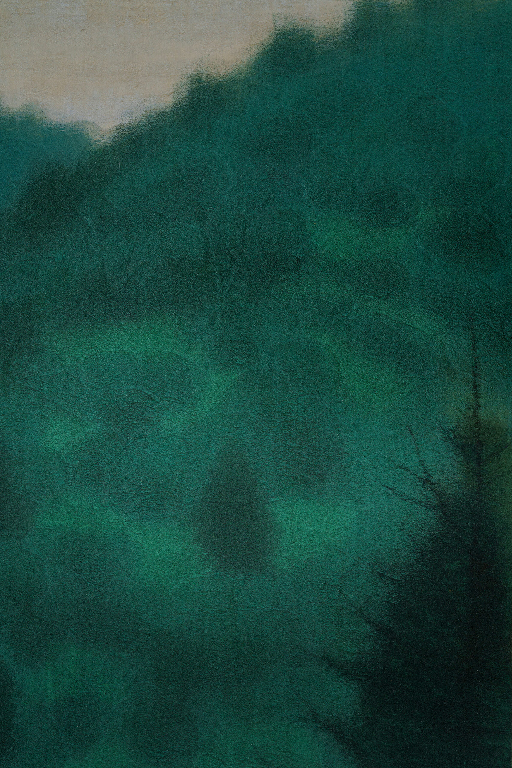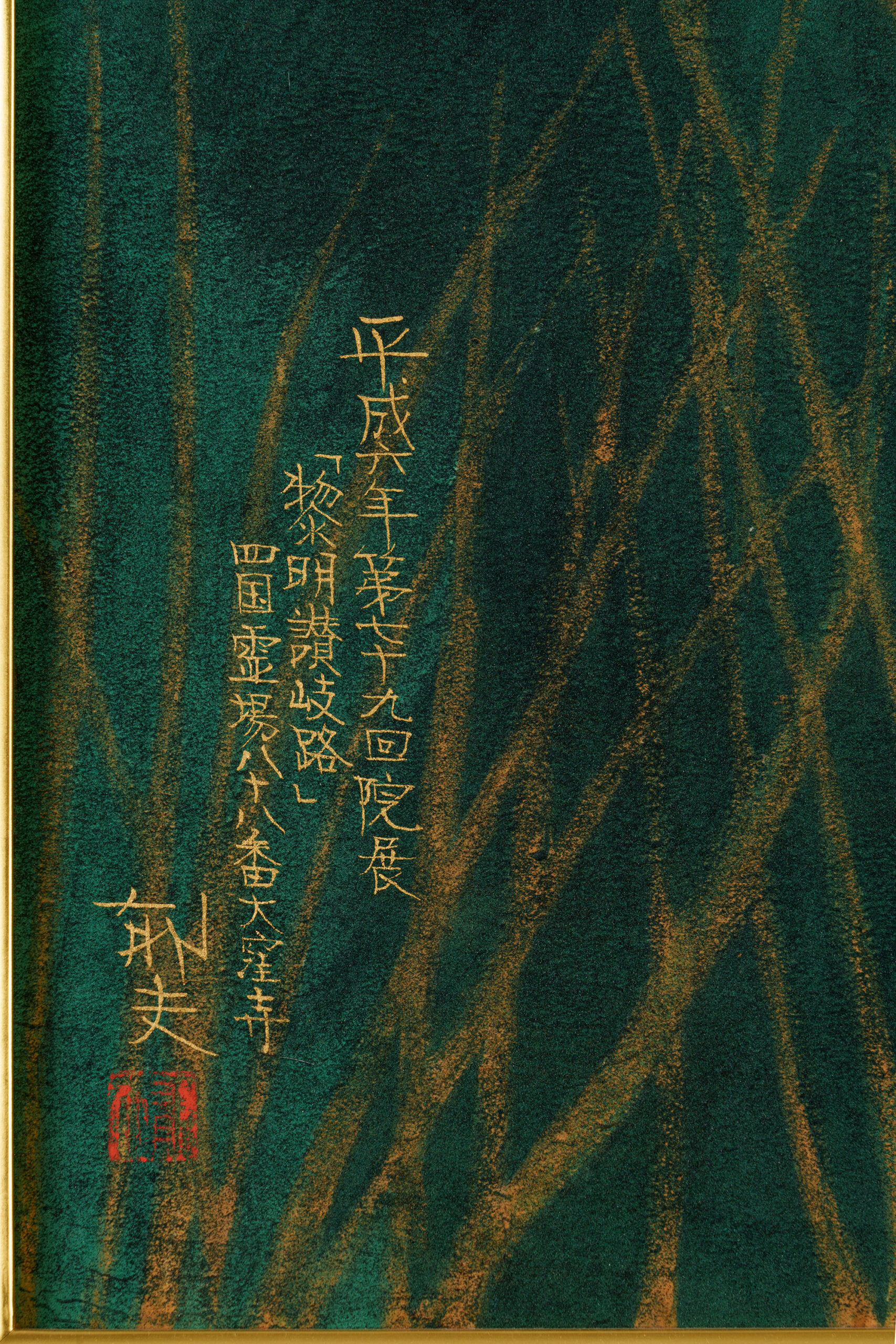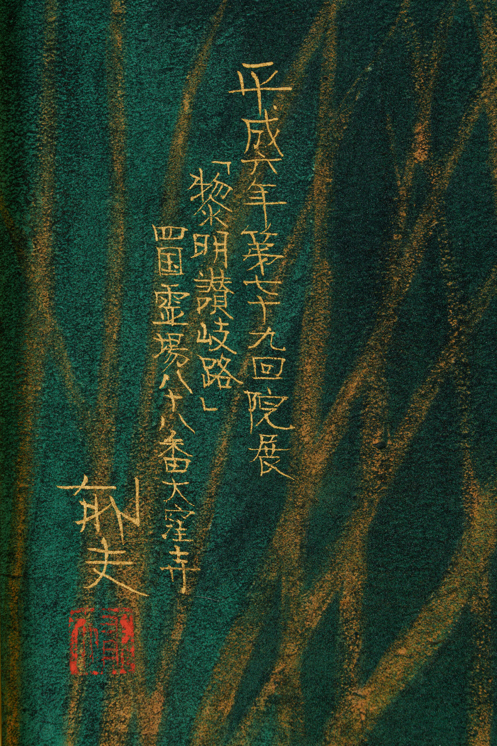 Soft light from the rising sun glows through a haze draped over the mountain ridges, gently illuminating Ōkuboji Temple and its surrounding landscape. Located in Sanuki City, Kagawa Prefecture, Ōkuboji Temple stands against the backdrop of Mt. Yahazu (788 m) and Mt. Nyotai (761 m) and serves as the final stop of the Shikoku pilgrimage, a circuit of eighty-eight sacred sites. Between 1992 and 1994, Hirayama visited Kagawa Prefecture on four occasions, producing numerous sketches. After refining the composition and color palette through a series of preparatory drawings, both small and large, he undertook the final painting and completed the work over a period of three years. Among the more than thirty works created through field research conducted throughout Kagawa Prefecture at that time, this painting stands as one of the masterpieces representative of the artist. It was exhibited at the 79th Inten Exhibition of the Japan Art Institute. Born in Setoda-chō (present-day Onomichi City) in Hiroshima Prefecture, Hirayama graduated in 1952 from the Japanese Painting Department of the Tokyo Fine Arts School (now Tokyo University of the Arts). He later produced many works exploring the origins of Japanese culture and Buddhism.