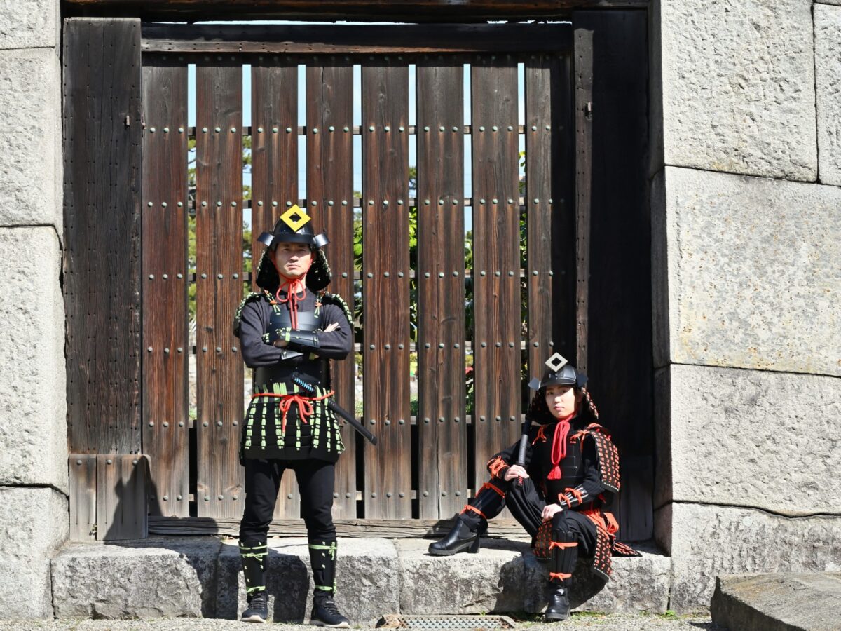 甲冑は実物を模して制作された重量型と簡易で軽量な軽量型があり、軽量型は甲冑姿で玉藻公園を散策することもできます。