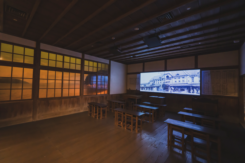 たのうらぶんきょうじょう)をモデルにした教室です。田浦分教場は、1902年に田浦尋常小学校として建てられ、廃校になる1971年まで使われていました。現在、香川県内に残る、数少ない明治の学校建築の一つです。教室では映像を見ながら香川の近現代の歴史を学ぶことができます。