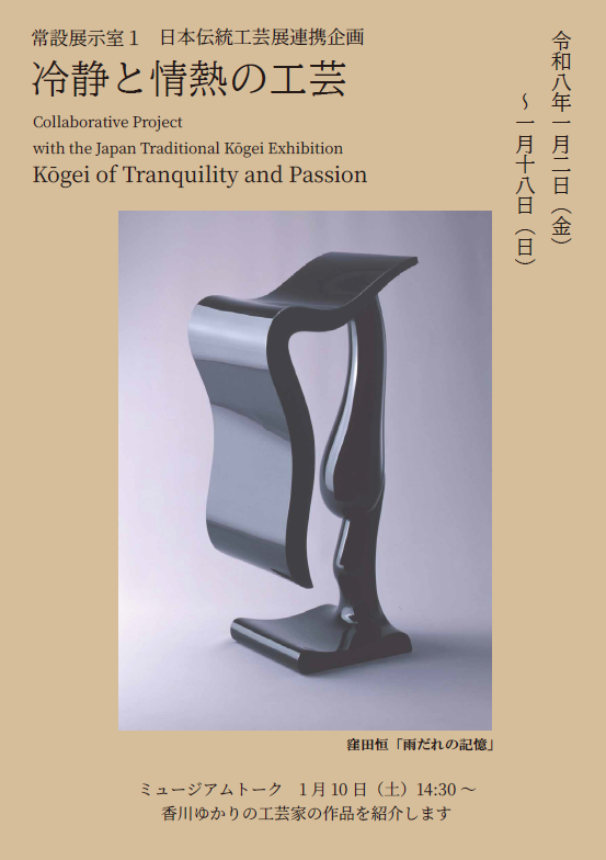 本展では、作者の冷静さが制作の要となる技巧や情熱を注いだ表現を切り口に、漆工や金工などの工芸作品の魅力を紹介します。
