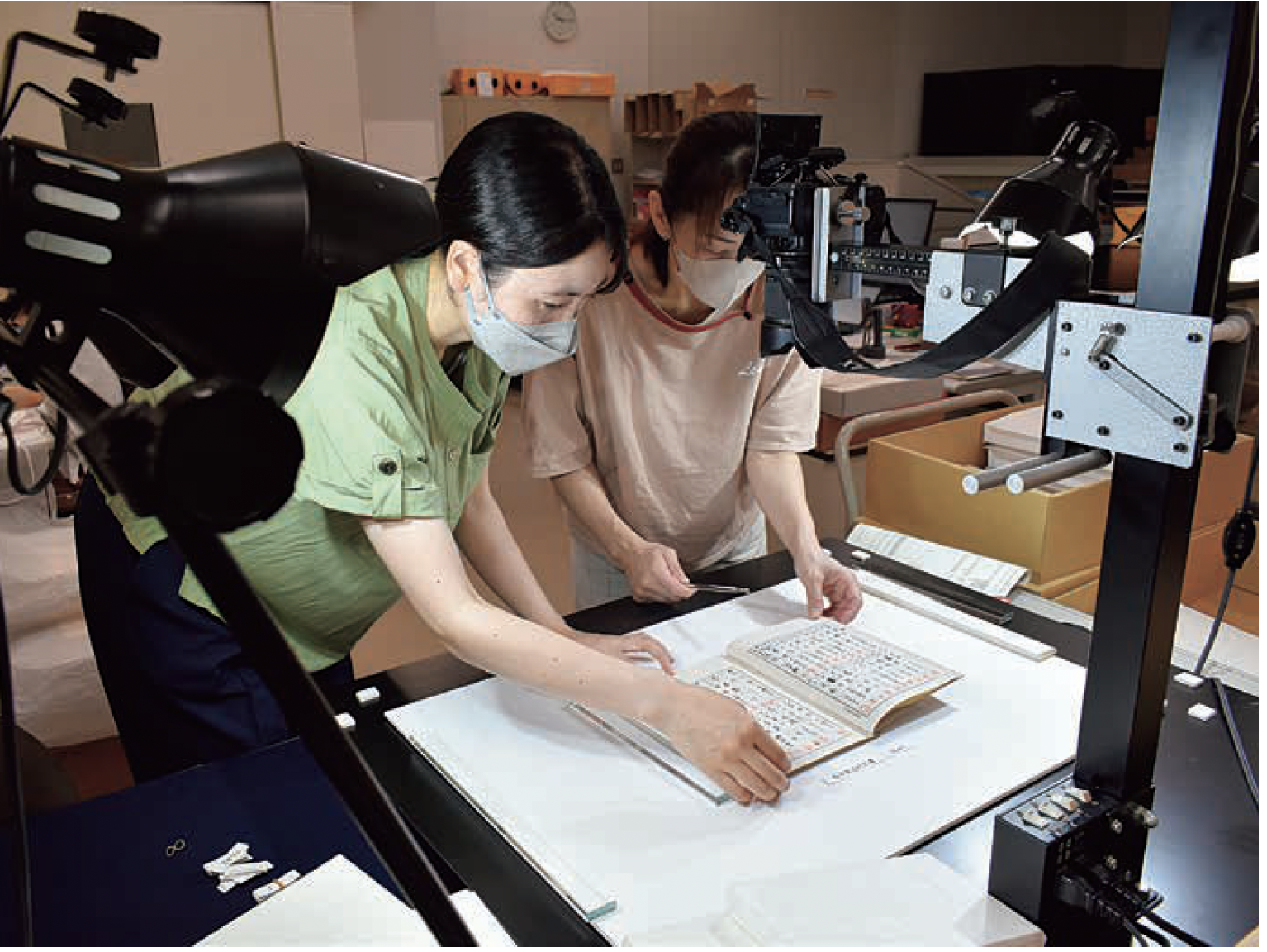 令和5年度からは、膨大な数の文書資料の目録作成や写真撮影の作業を行っています【図2】。文書から読み取れる情報によって、調査報告書に掲載した写真の内容や撮影時期等について、より詳しく解明されていくことが期待できます。また、目録が完成すれば、多くの人が資料の内容を知り、活用できるようになります。