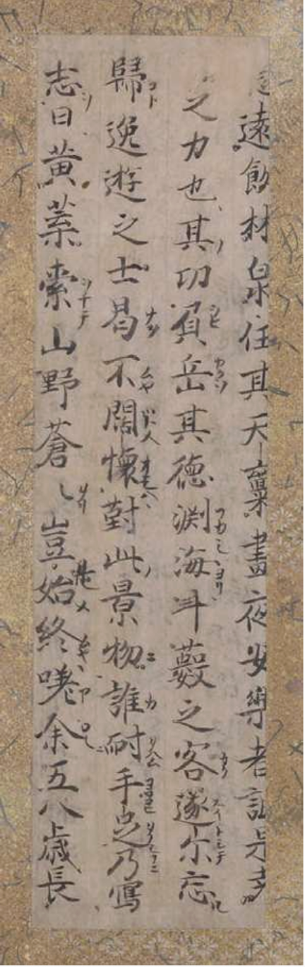 空海は文才に優れていた。24歳の時、出家宣言書にあたる「三教指帰」を著したのをはじめ、空海の秀でた文章力を示す事績は多い。「遍照発揮性霊集」(通称「性霊集」)は、弟子の真済が空海存命中よりその漢詩文を10巻に編集したもの。原本は現存しないが、今、香川県内に最古級の写本第三巻の断簡[図1]が伝わる。本品は奈良国立博物館の国宝残巻と條巻で、もともと『日本書紀』の平安時代(9世紀)の写本の紙背を再利用し『性霊集』を記した。『日本書紀』『性霊集』、両者いずれも国内最古級の写本であり、奈良博本と初めて同時公開が叶う。「草聖」と称され、名筆で知られた空海。「善通寺額」[図2]のように後世生まれた逸話も多く、真筆と伝わる墨蹟は少なくない。萩原寺の『急就章』[図3]は、空海の真筆として伝来し江戸幕府の5代将軍徳川綱吉の上覧にも供した。「急就章」は中国・漢時代に成立した文字学習書。空海は唐で王義之筆のものを入手し、帰朝後、嵯峨天皇に献上したという。