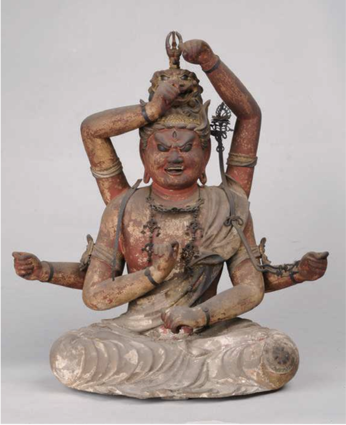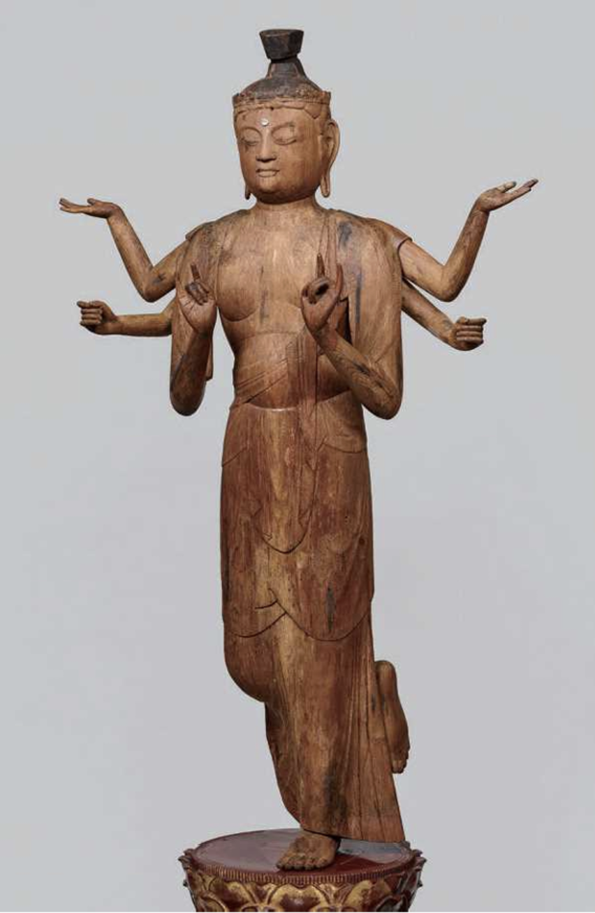 空海誕生前の讃岐の仏教美術を代表するものに願興寺の乾漆聖観音坐像[図6]を挙げねばならない。奈良時代、漆は貴重で脱活乾漆の技法は官立工房等、都に限られた。古代讃岐と都の密接な関係を物語る重要な像である。