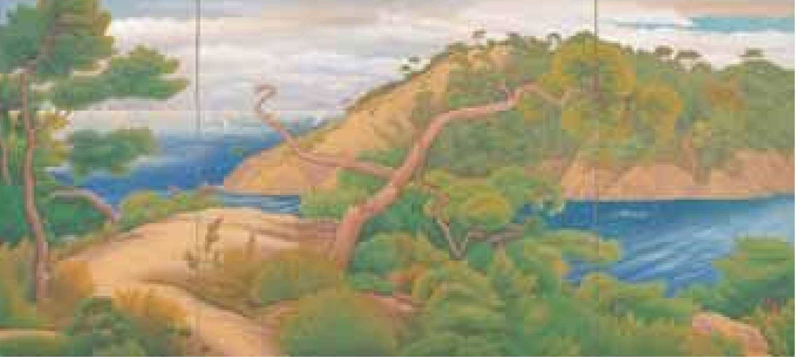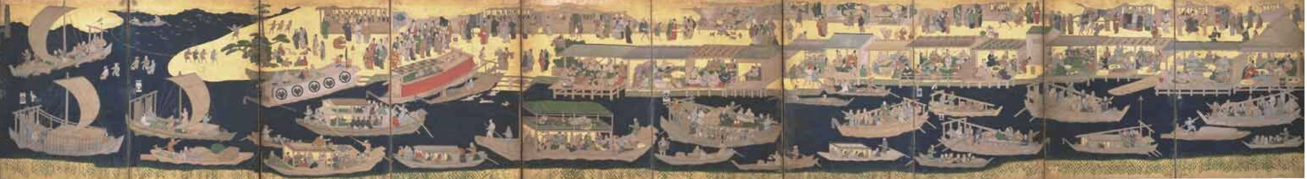 その特色のひとつは花崗岩などにより形づくられた巨石・奇岩や白砂青松、あるいは瀬戸と灘、潮流、干満、島々などが織りなす自然の姿です。また、古代より大陸への大動脈であった瀬戸内海は、源平合戦や交易船が行き交う歴史の舞台となり、航行する北前船や漁撈を営む人々、塩田で働く人々なども生き生きと捉えられ、歴史の一場面や暮らしの実景として描かれてきました。さらに瀬戸内の風景は、物語の場面や寺社縁起絵、名所絵として壮麗に昇華され、理想化された景観としても描かれました。