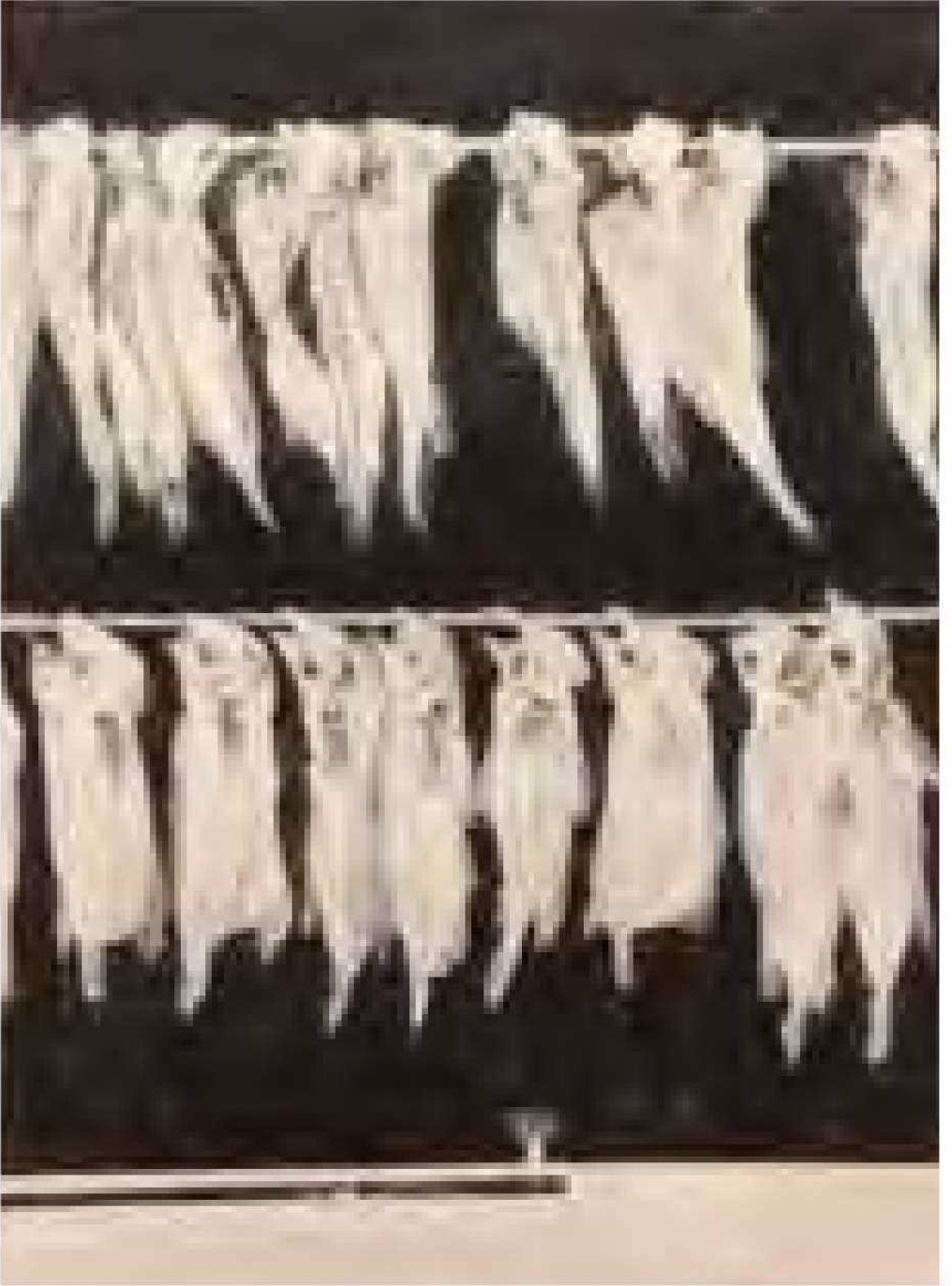 香川県出身の紙版画家 井上員男(1932)の作品から瀬戸内の風物を紹介します。井上は昭和49年(1974)から52年まで、各地を取材し、「四国の漁港より」や「瀬戸内シリーズ」といった瀬戸内海の港や瀬戸内の風物をモチーフにした版画を制作しました。漁で取れたカレイを干す港の一隅や漁船が集まる港、港によって栄えた町などの風景が見いだされます。紙版画特有のモノクロームで表される風景は、瀬戸内の湿気や優しい波音を伝え、また港町に見る焼き板塀やナマコ壁、それらを照り返す明るい陽射しまでも思い起こさせます。