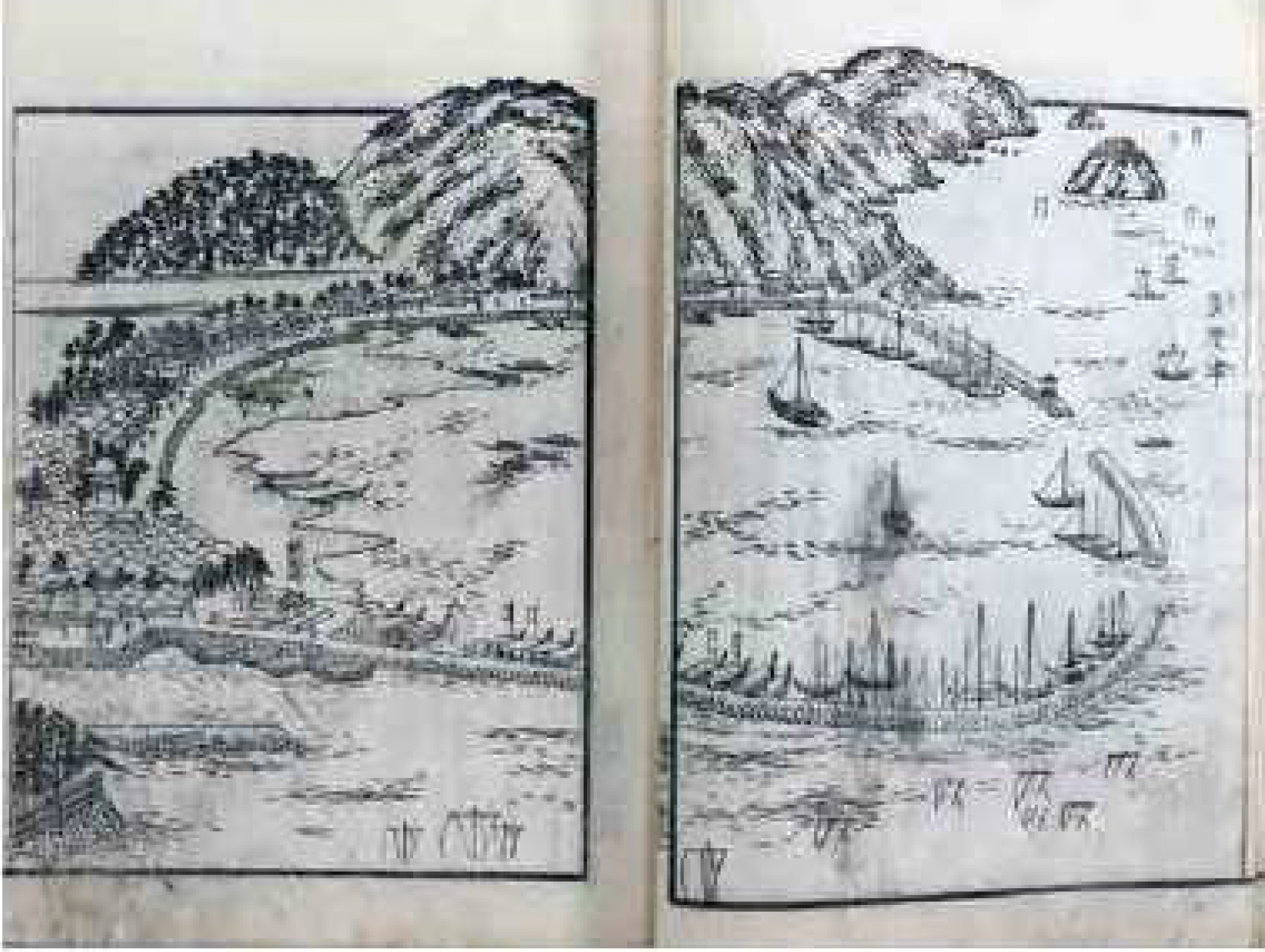 多度津の港は桜川の河口を利用したものでしたが、船の往来が多くなるにつれて拡張が必要となってきたとみられます。そのために海を囲う堤防を築いて港としたのが多度津港前です。港前の完成により、大型の船も入ることができ、波をさける機能をもった良港が誕生します。