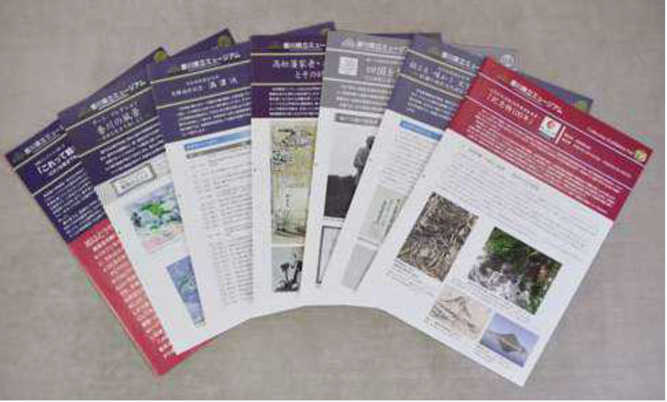 年間10回以上開催する常設展では、特別展のように図録を制作することは難しいですが、展示内容をより深く知っていただき、会期終了後も展示会の記録やその準備過程で得られた調査研究の成果を残していくため、開催ごとに、2〜4ページの展示解説シートを発行しています。これまで、前身の香川県歴史博物館で138号、美術部門を統合してからはミュージアムになってから116号(2020年12月末現在)を発行してきました。過去のシートを見ると、幅広い資料・作品を収蔵する当館の特徴や、調査研究の蓄積がわかります。