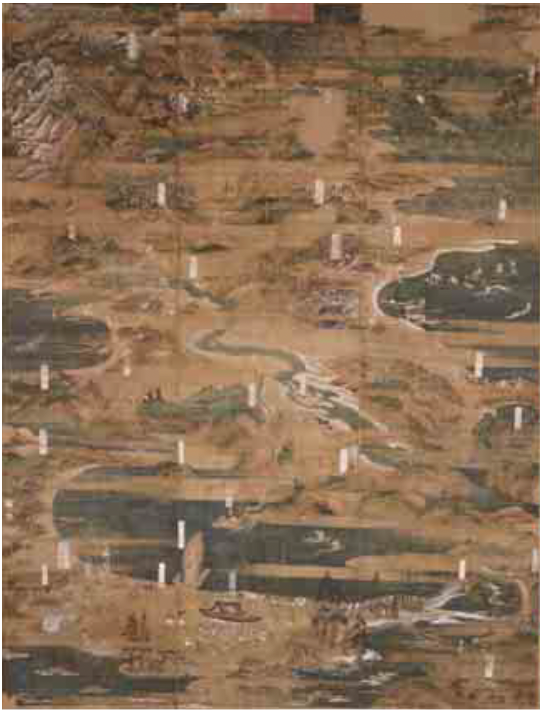 海辺の霊場・志度寺では、鎌倉時代の末頃から南北朝時代に縁起絵が次々と作られ、その絵を前にした人々に物語を語り聞かせる「絵解き」が行われたようです。「御衣木之縁起」という1幅には、近江国(滋賀県)の大木が暴風雨で流れ出し、琵琶湖から淀川を経て瀬戸内海に入り、志度の浦に漂着した様子が描かれています。各地で祟りをなしたこの霊木は志度の浦で拾われて十一面観音に彫られ、それが志度寺の本尊になったというのです。絵を前にした人々は、海のかなたからやってきた霊木の過去に思いをめぐらせ、時空を超えた観音の霊力を感じ取ったことでしょう。