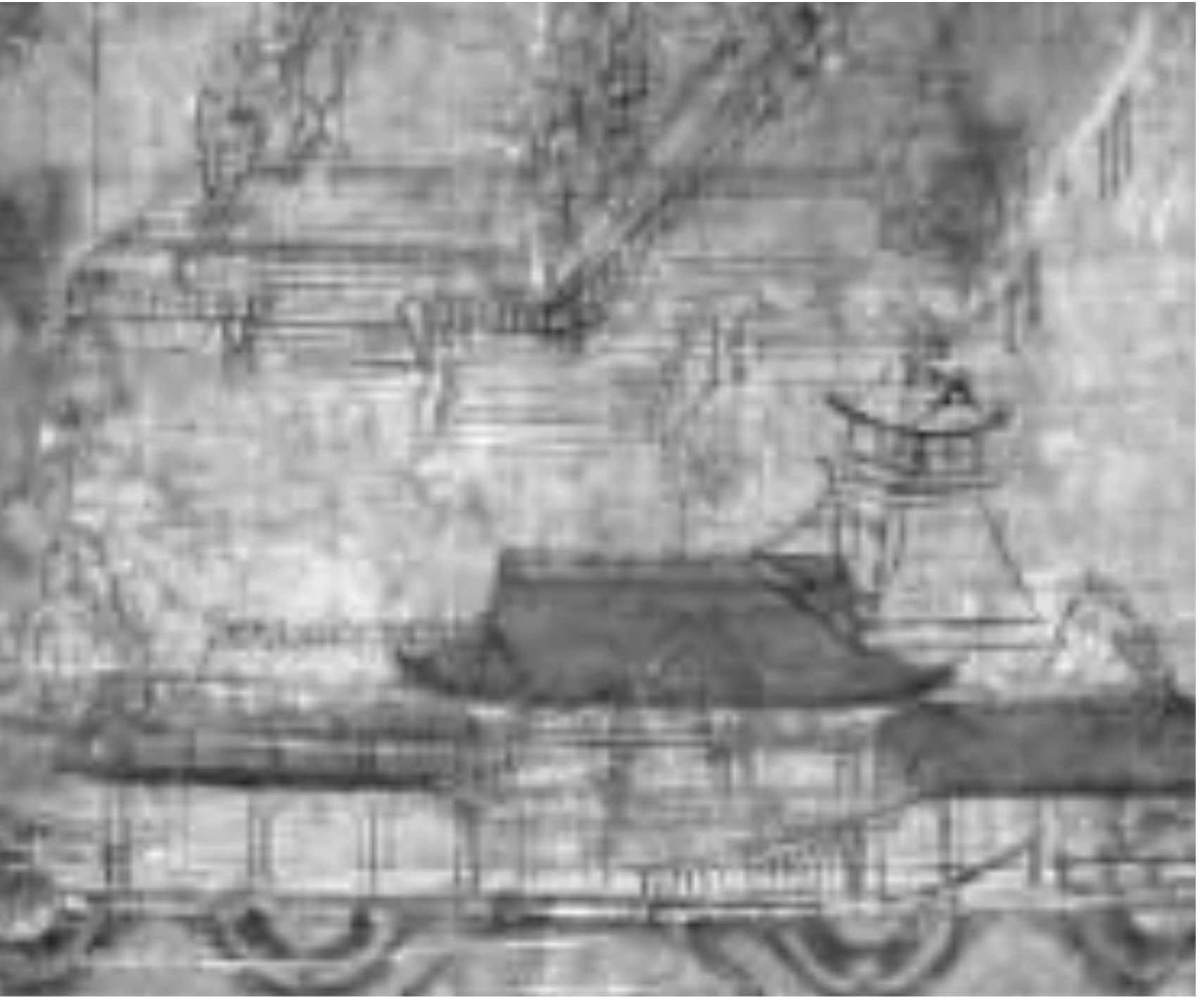修理の過程で知り得る情報もあります。軸木6本のうち4本には、寛文11年(1671)の墨書銘があり、高松藩二代藩主松平頼重の命で修理が行われたことがわかります。また6幅のうち2幅には、肌裏とよばれる裏打ち紙として墨染色の紙が使われていたことが確認されました。この他、赤外線調査によって下図(図の下書き)があることも判明しました。本展ではこのような修理過程での新たな知見も紹介します。