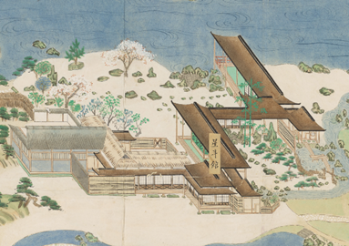 描かれた「栗林図」(高松松平家歴史資料)の全体を観覧できる大型パネルを展示します。